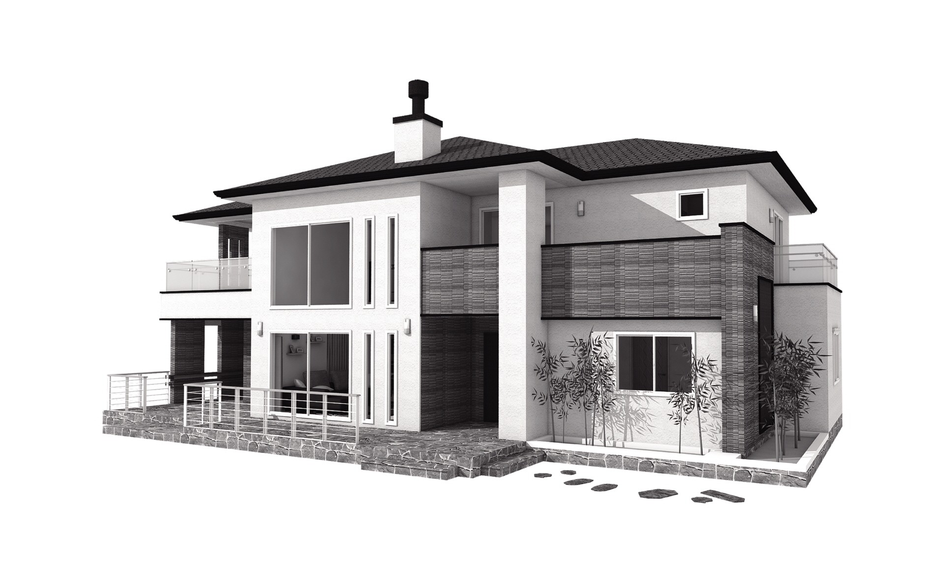 외벽재 : 세라믹타일, 스타코플랙스