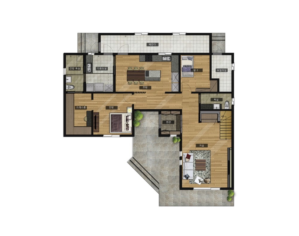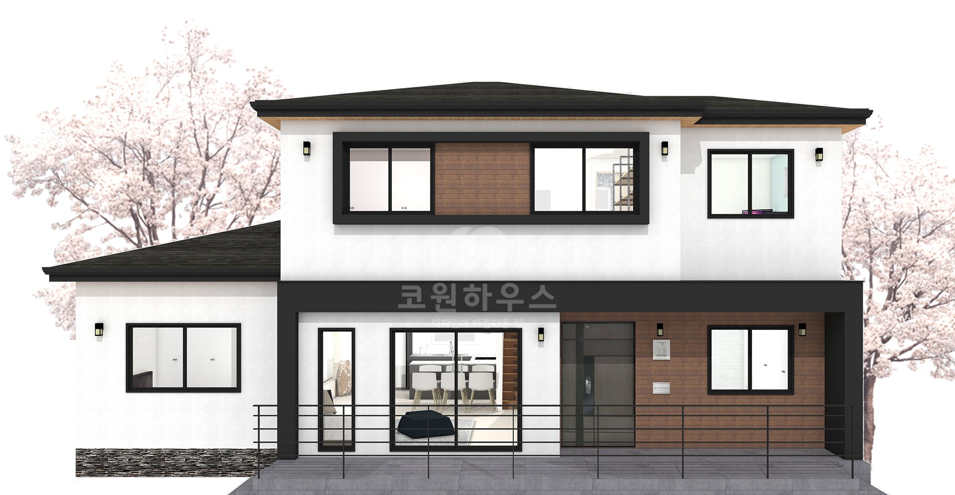 60평형 김포장기동|중우한 외형과 중앙의 작은 정원을 겸비한 전원주택 지친 하루를 편안히 토닥여주는 세미모던주택