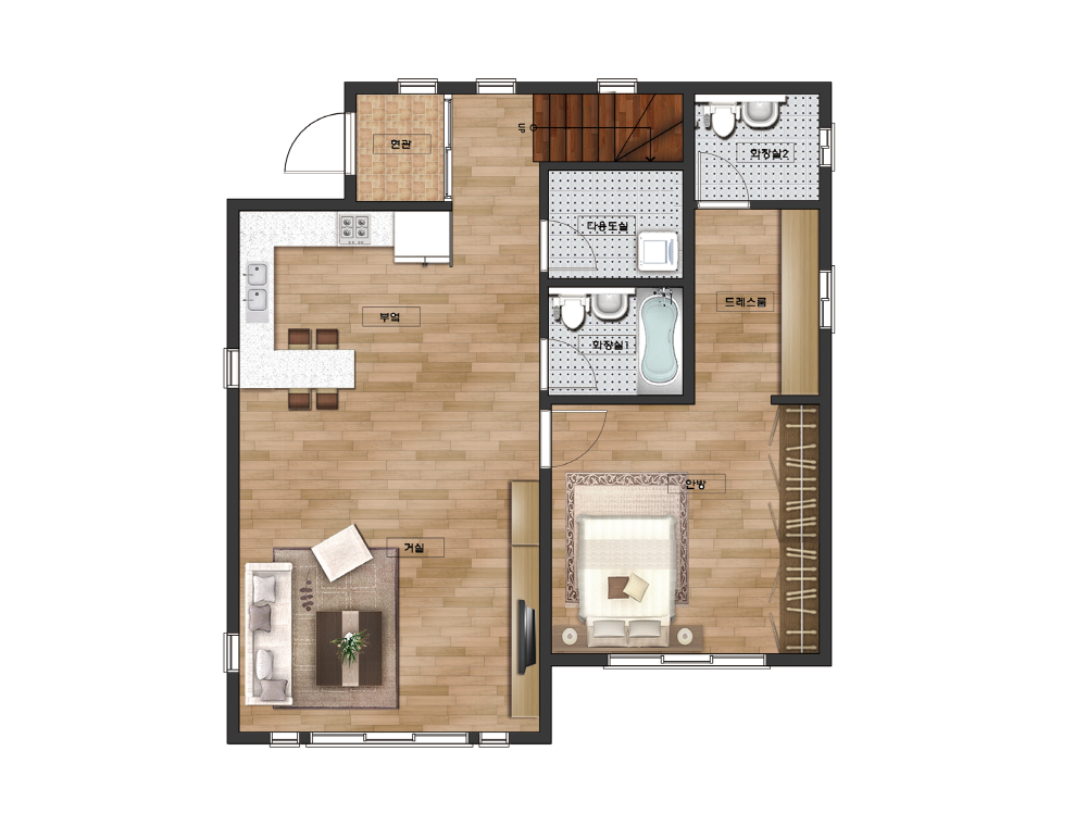 단열재 인슐레이션(내벽:R-11, 외벽:R-19, 지붕:R-30)
