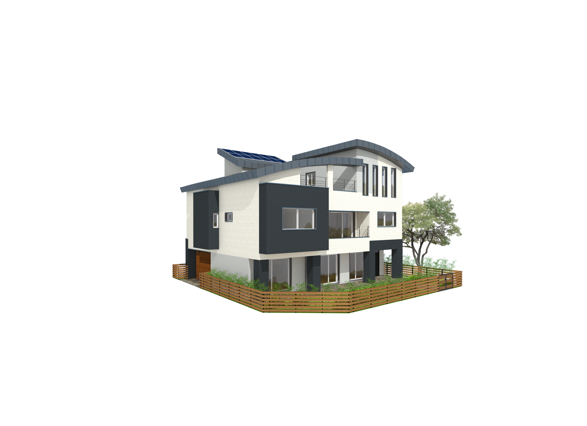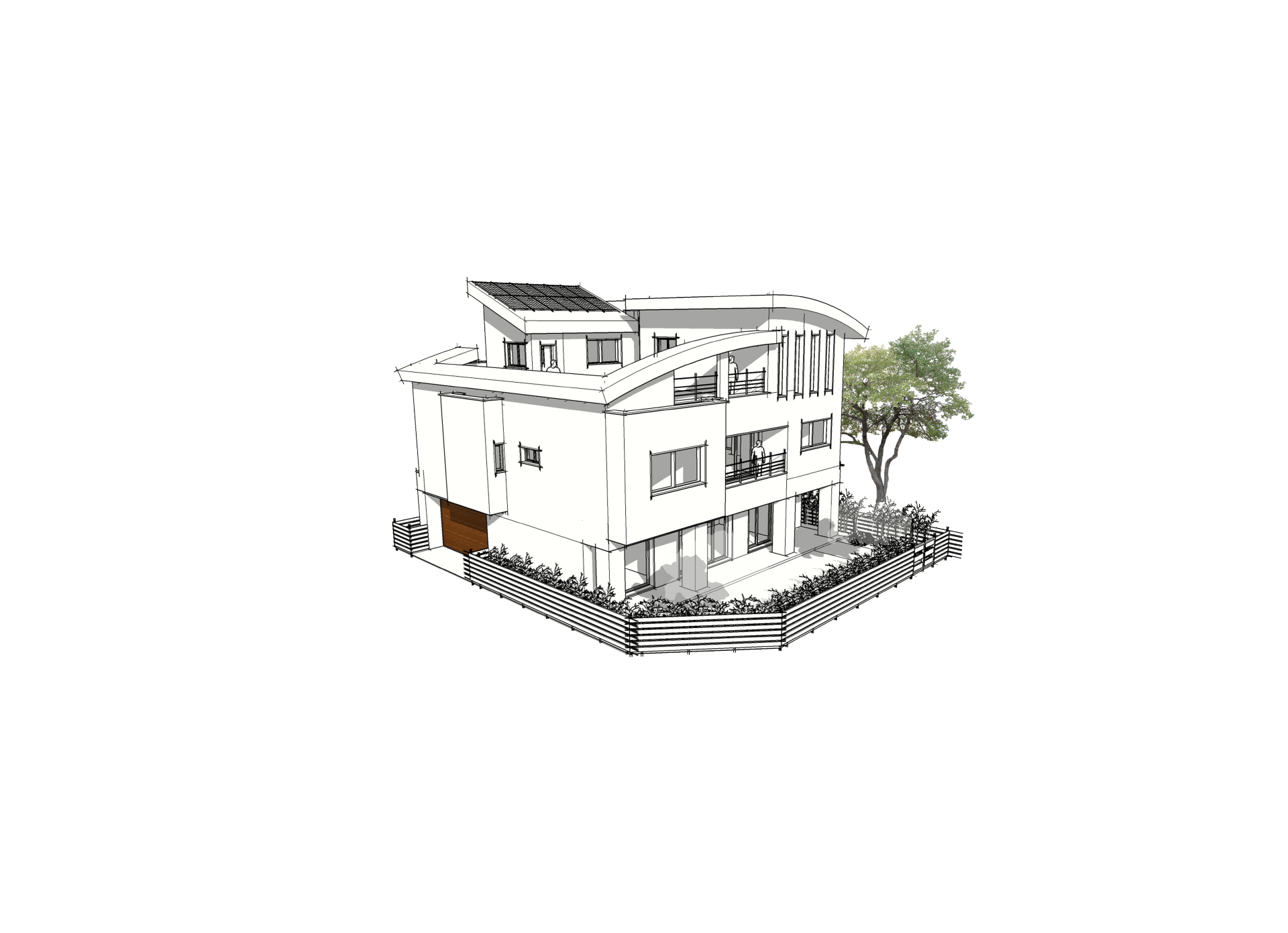 132평 제주도 도남동|한라산을 바라보는 넓은 조망창과 옥상데크. 제주의 자연이 담긴 곡선형 지붕의 3층 모던주택 반영구적인 세라믹타일 외장재와 티타늄징크 지붕을 사용함으로써 입체감을 통해 심플하면서 단조롭지 않은 디자인 계획과 넓은 조망창과 옥상데크의 계획으로 제주도 한라산의 풍경이 담긴 모던주택.