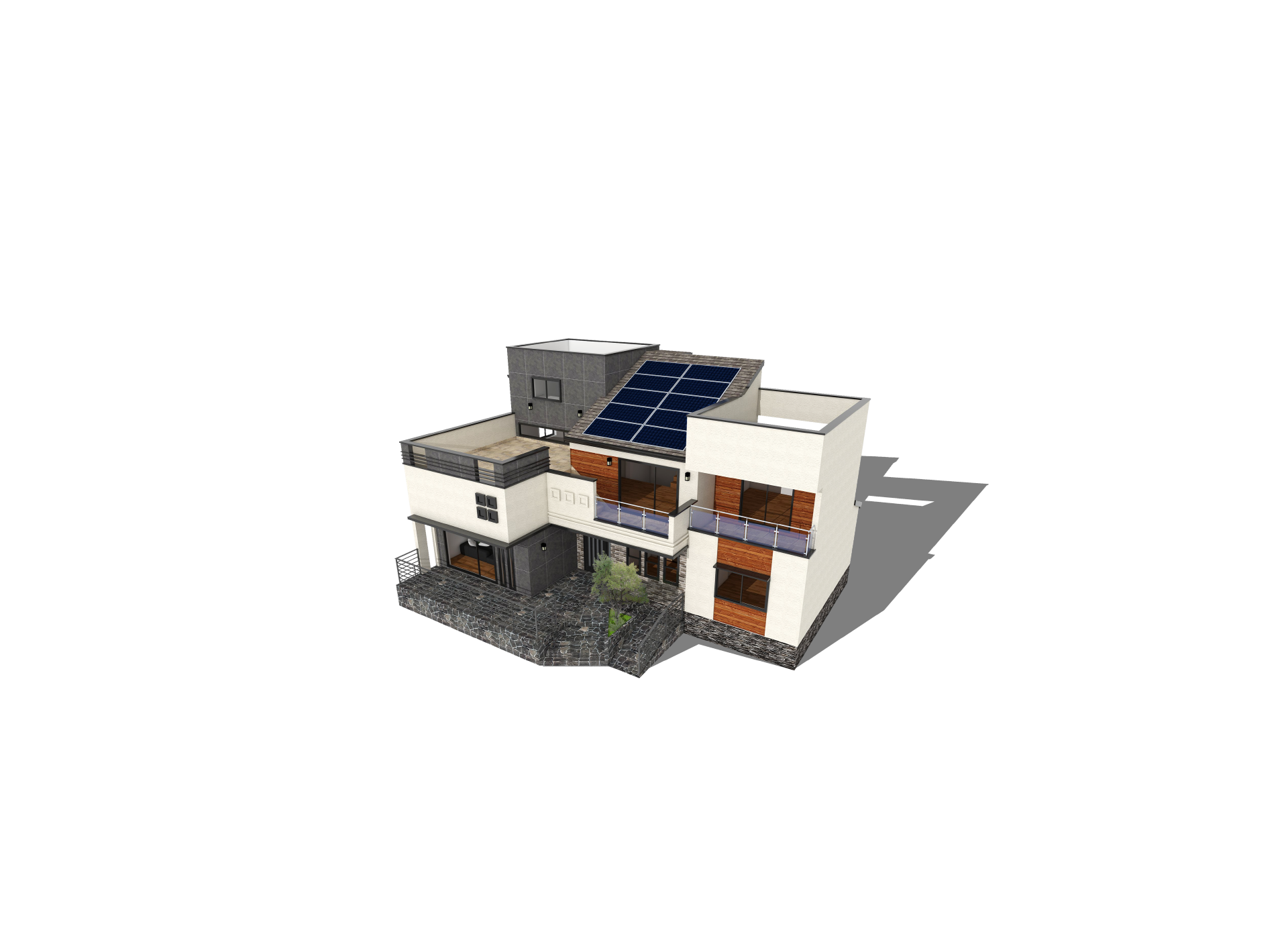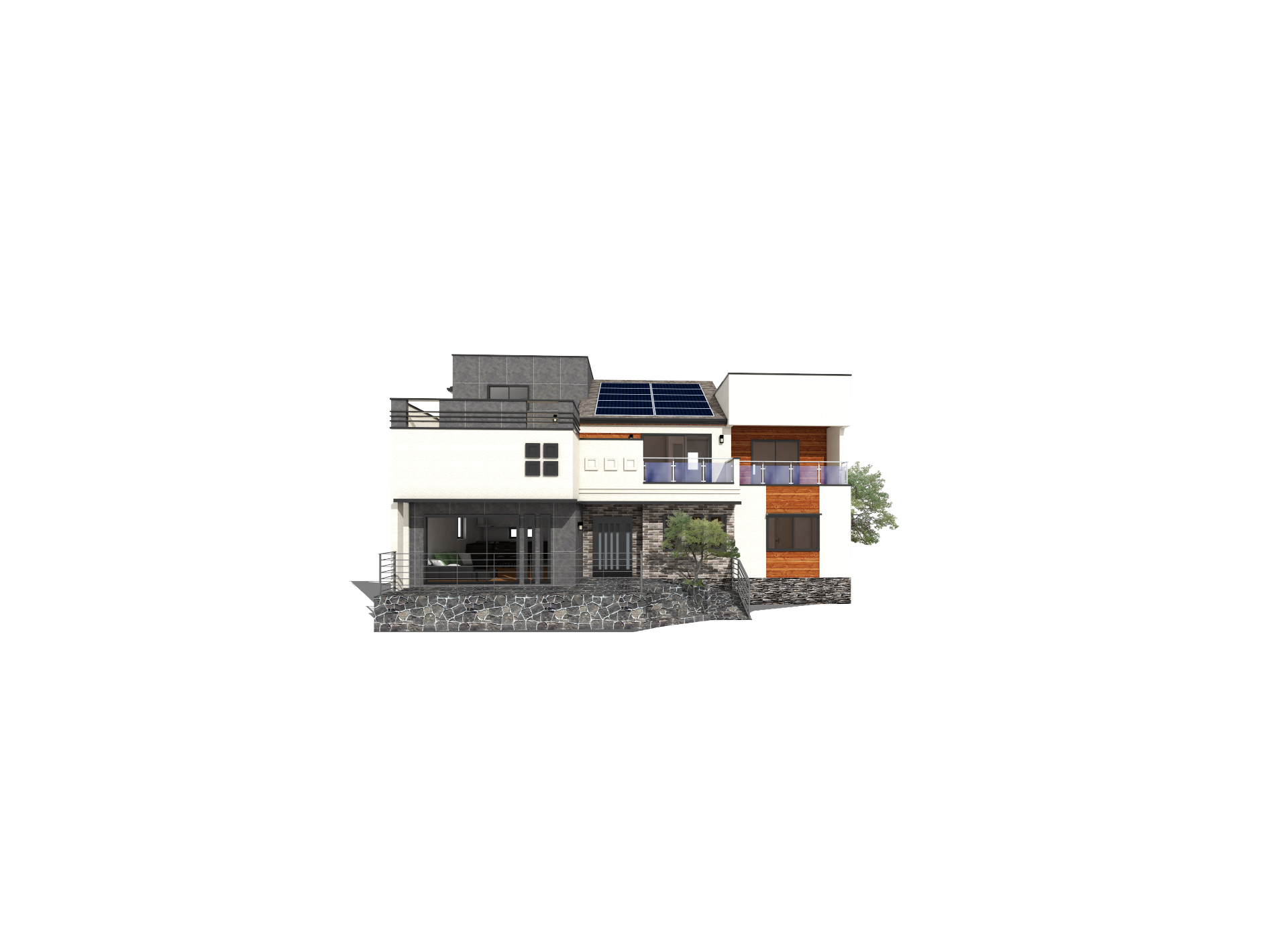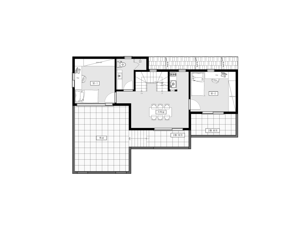2층 공간에 더욱 넓은 옥상공간을 형성하였으며, 태양광 사용을 위한 자연스러운 지붕 디자인을 계획 하였다.