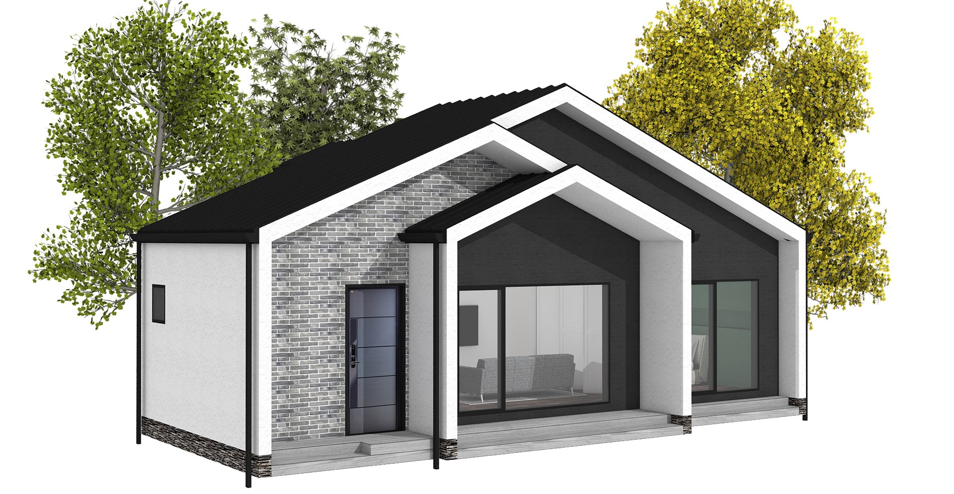 거실과 주방을 일자배열 함으로써 넓은 공용 공간을 가지며 거실을 1.5층 정도 높여 시원스러운 공간을 주며,