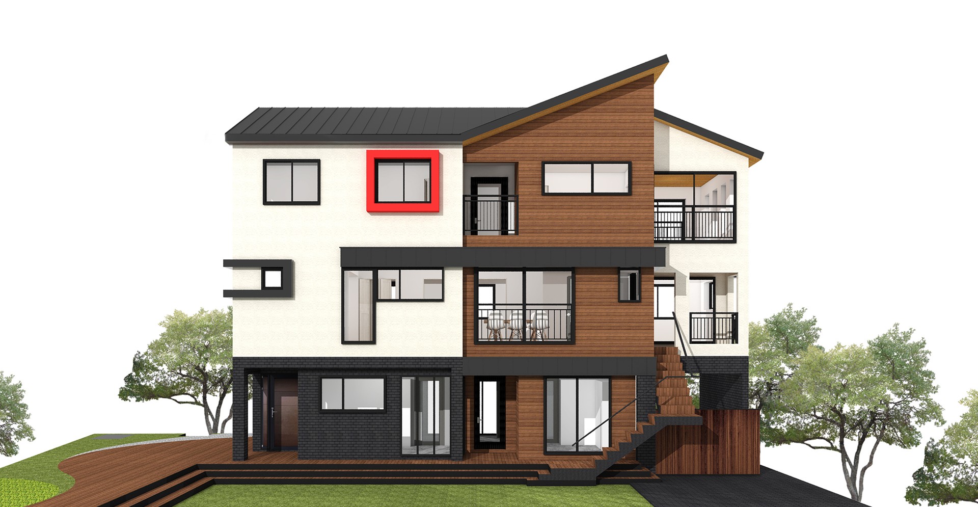 55평형 청라 2호|원근감이 강조된 외관을 더욱 돋보이게 만드는 다양한 질감의 외장재로 세련미를 부각시킨 모던주택