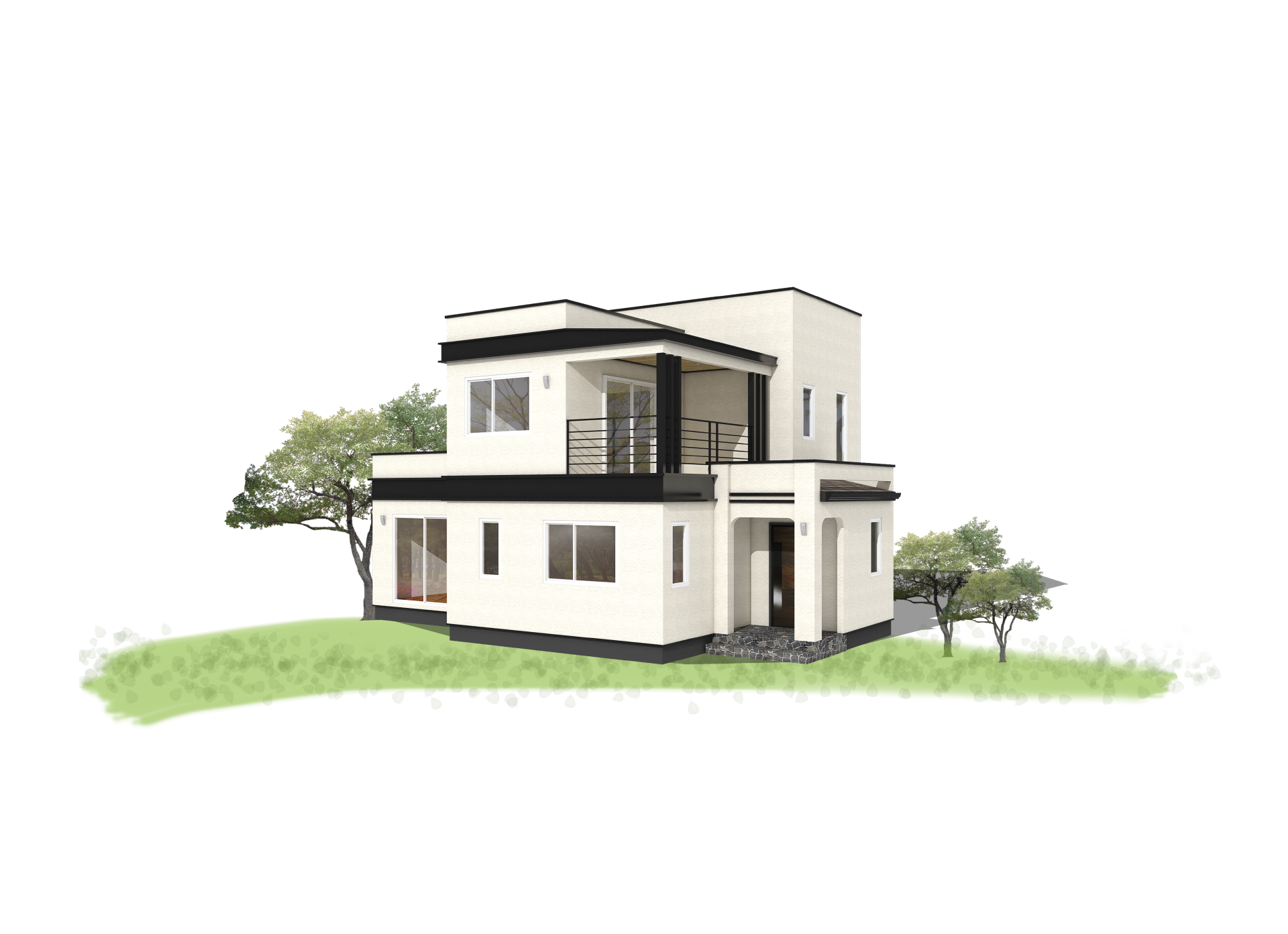 2층에 넓은 테라스가 있는 박스형 모던 주택이며, 블랙엔 화이트로