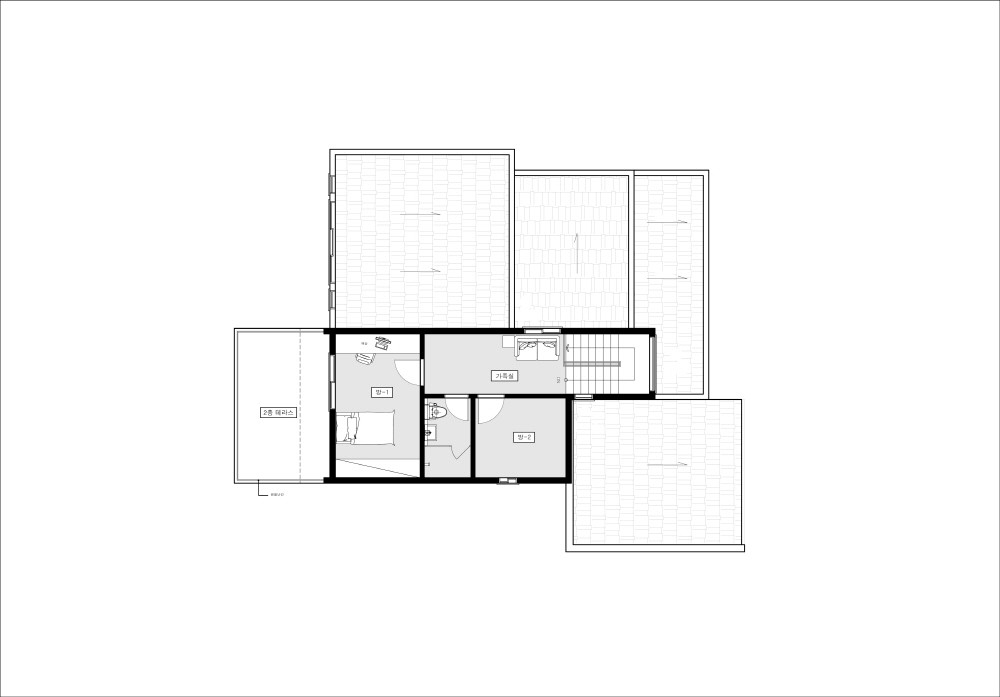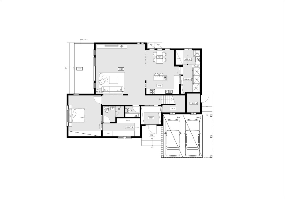 손님이 많이온다는 건축주의 의견에 공용공간을 넓게 구성하므로써 답답함이 없는 평면구성,