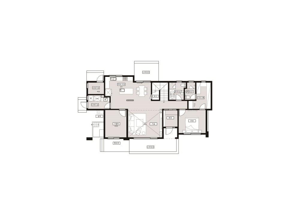 62평형 안성 북가현리|큰창을 통해 주위의 산수화 같은 풍경을 내부로 끌어들이고 전통 온돌방을 적용하여 특별함을 더한 일본식 주택 집의 어느방향에서든 자연을 충분히 느낄 수 있도록 큰창을 계획하고 건축주님의 취미생활을 위한 카페를 더해 전원 생활의 꿈을 이룰 수 있도록 하였다.