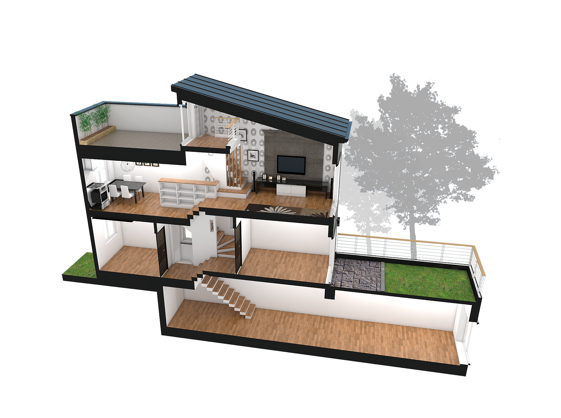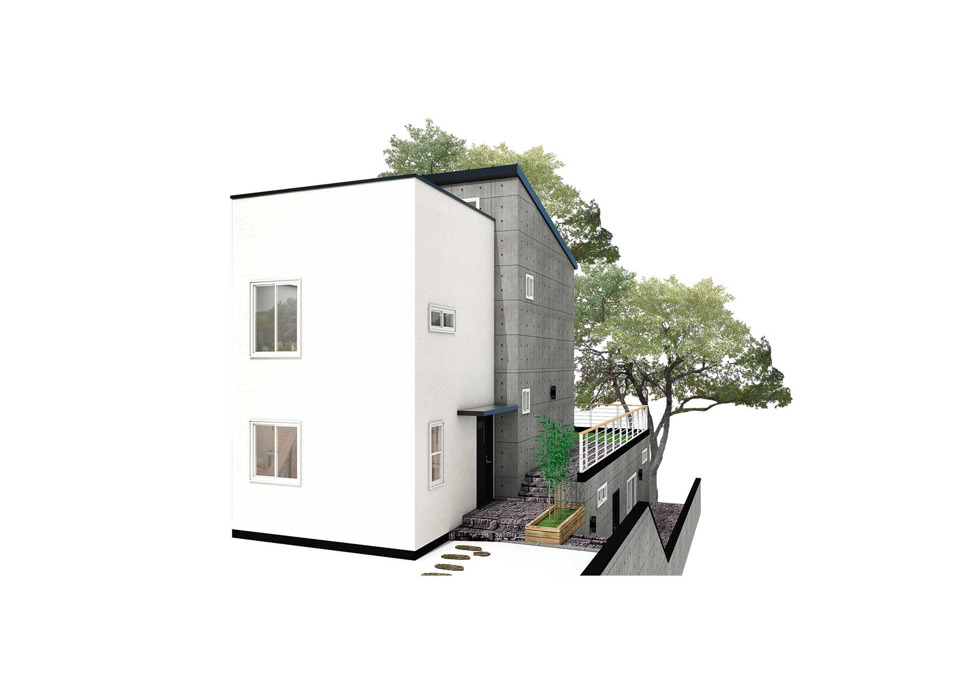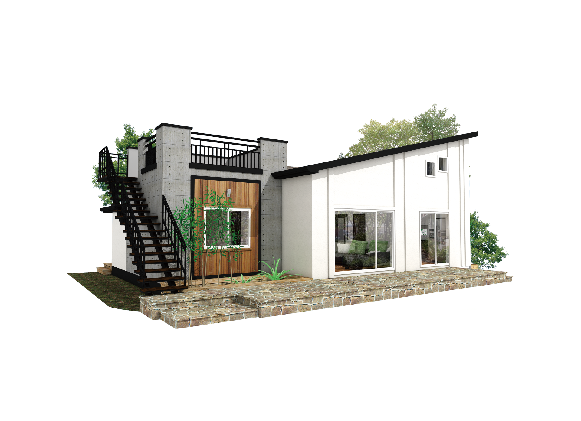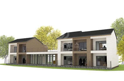 경사진 대지를 살려 각실이 스킵플로어형 구조로 연결되어 있는 박스형 모던스타일의 주택이며, 깔끔하고 세련됨을 느낄 수 있는 실용적인 전원주택