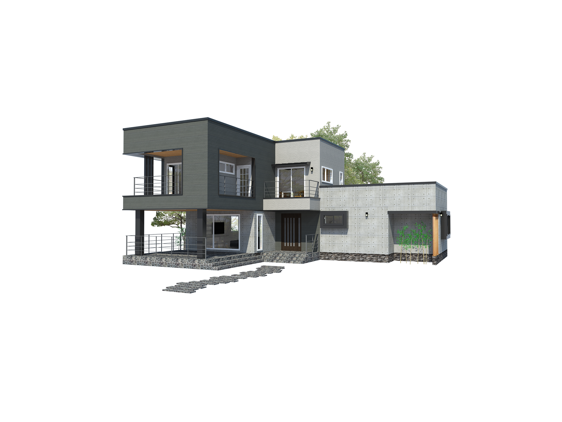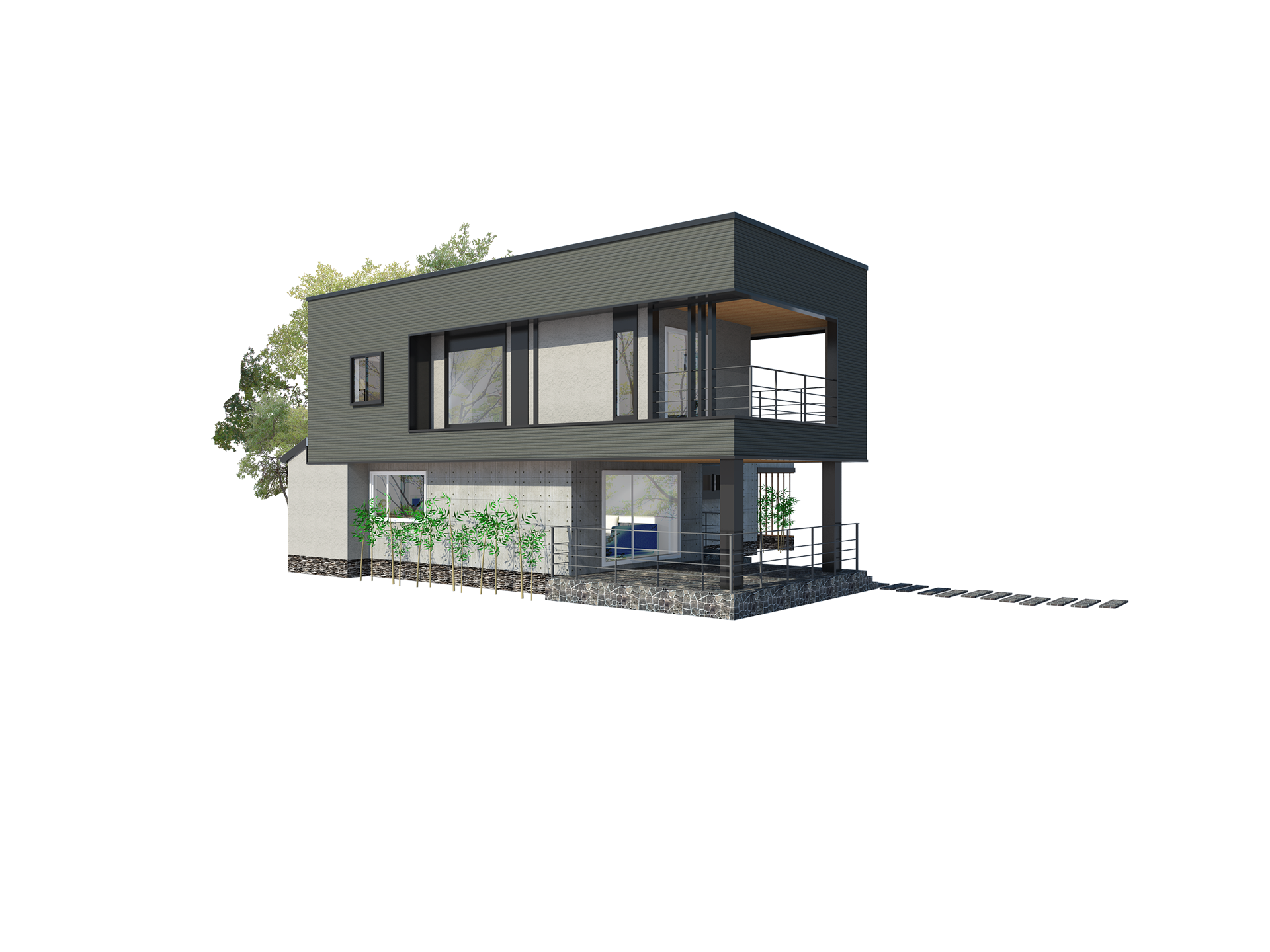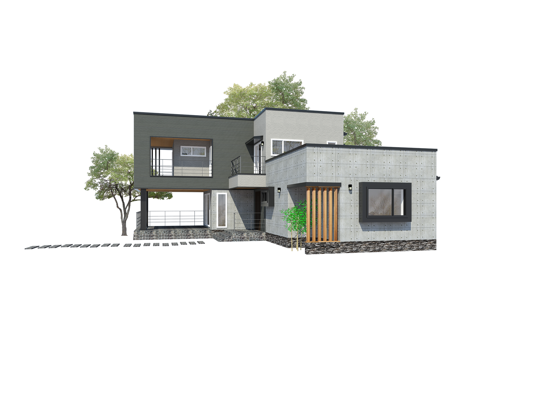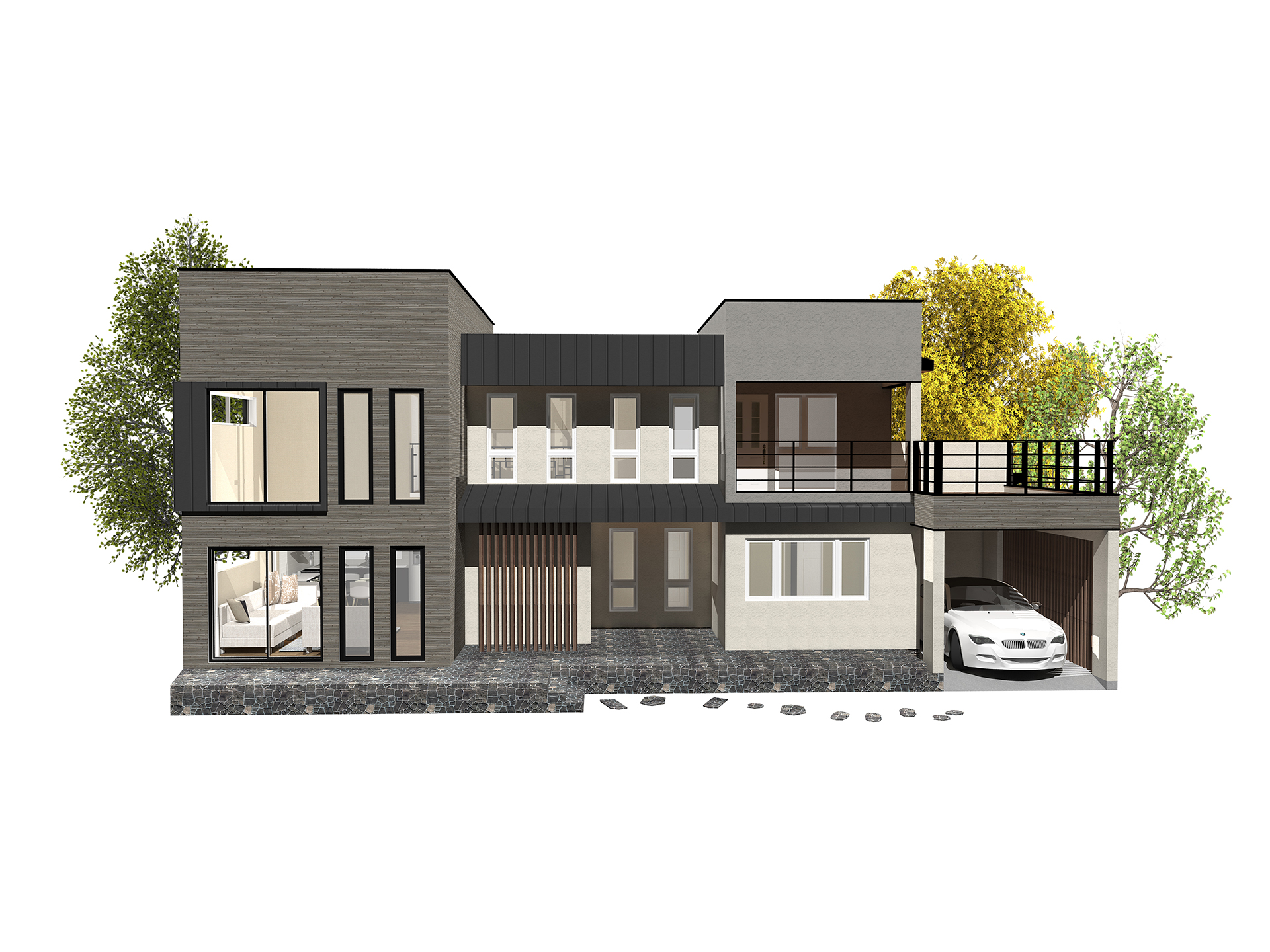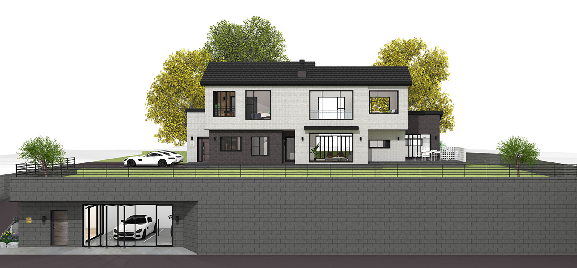 거실앞쪽으로 캔틸레버 구조가 이상적인 박스형 모던스타일
