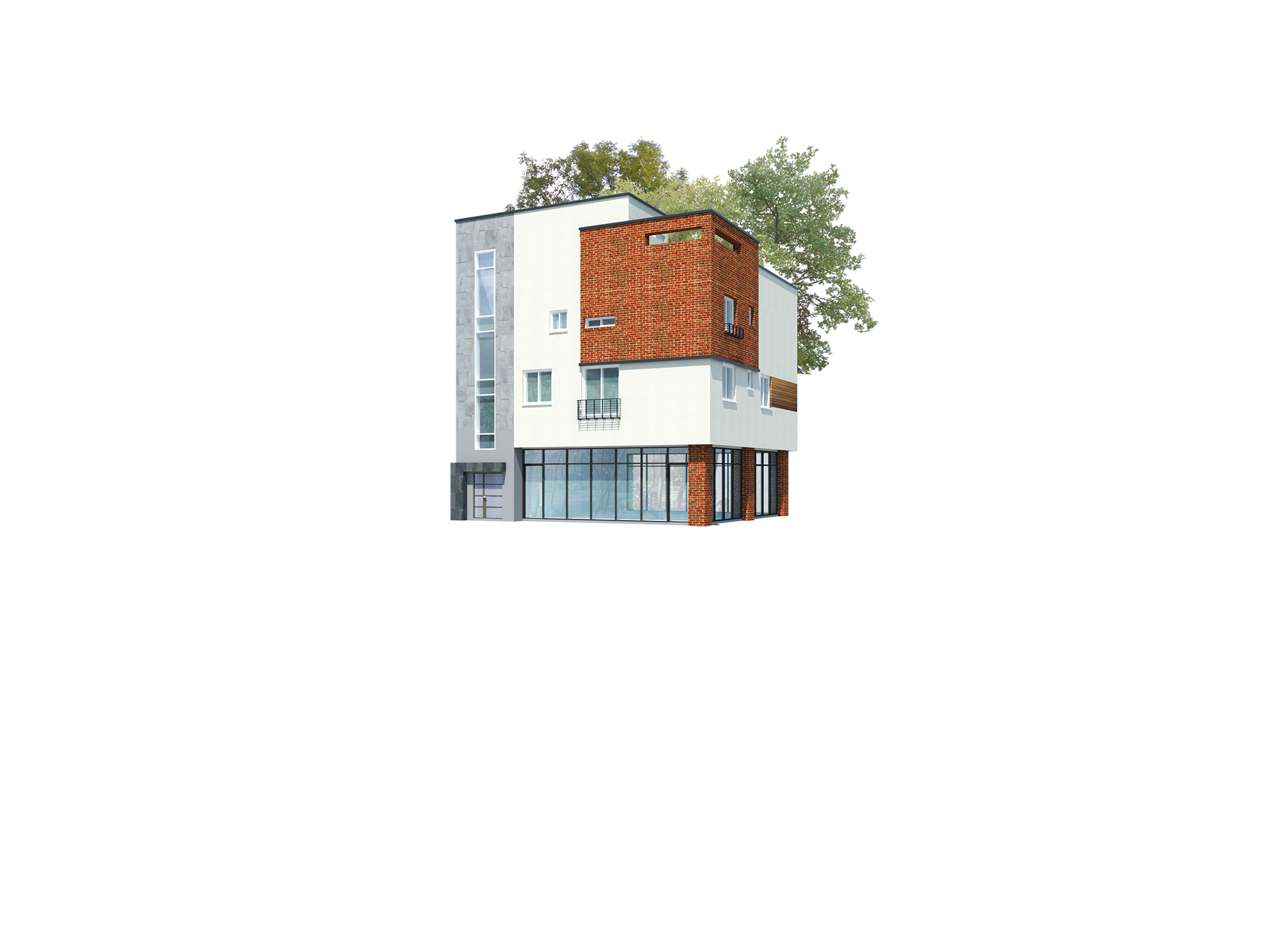 외벽재 : 스타코플렉스, 고벽돌, 현무암, 합성목재