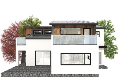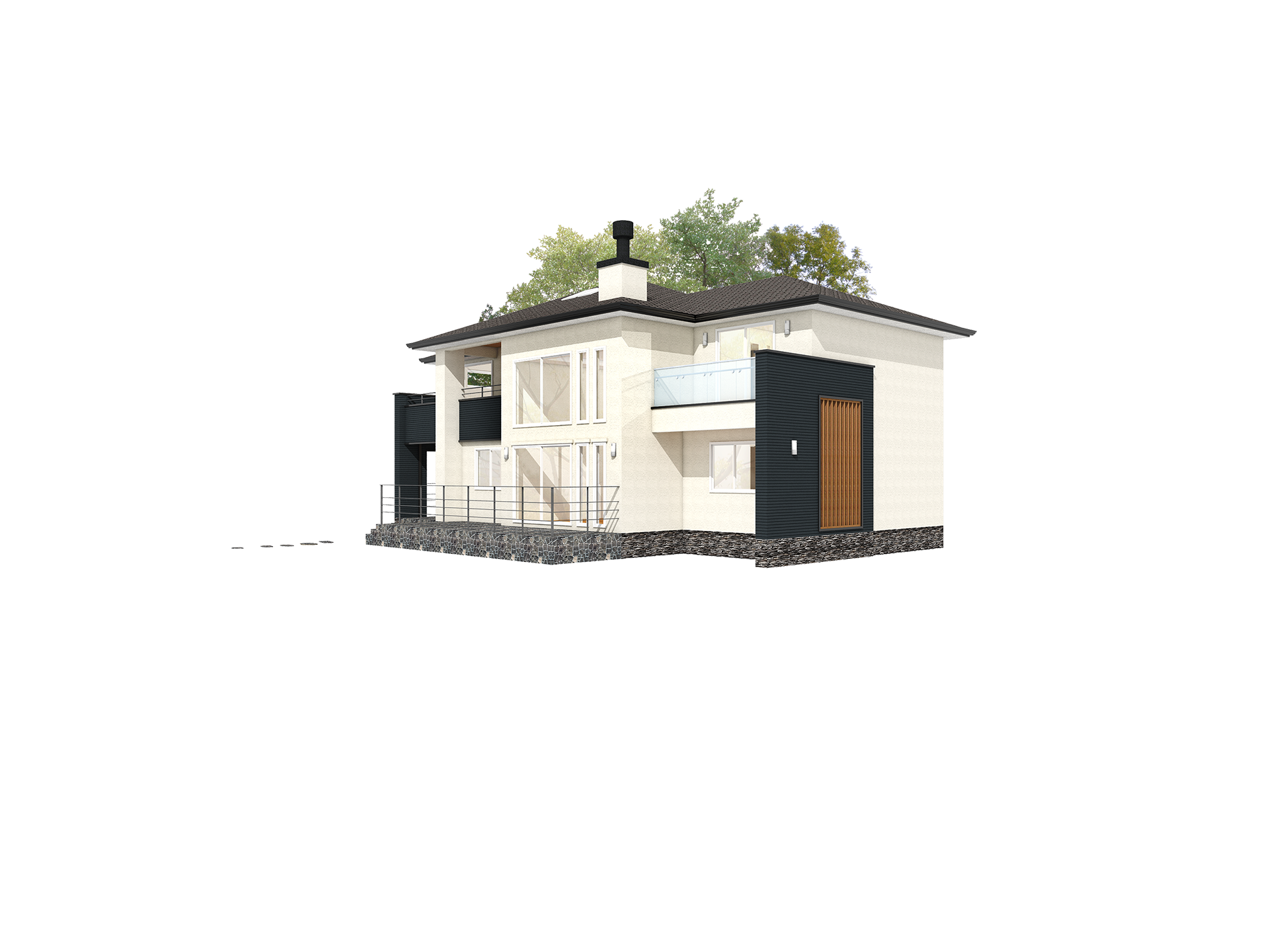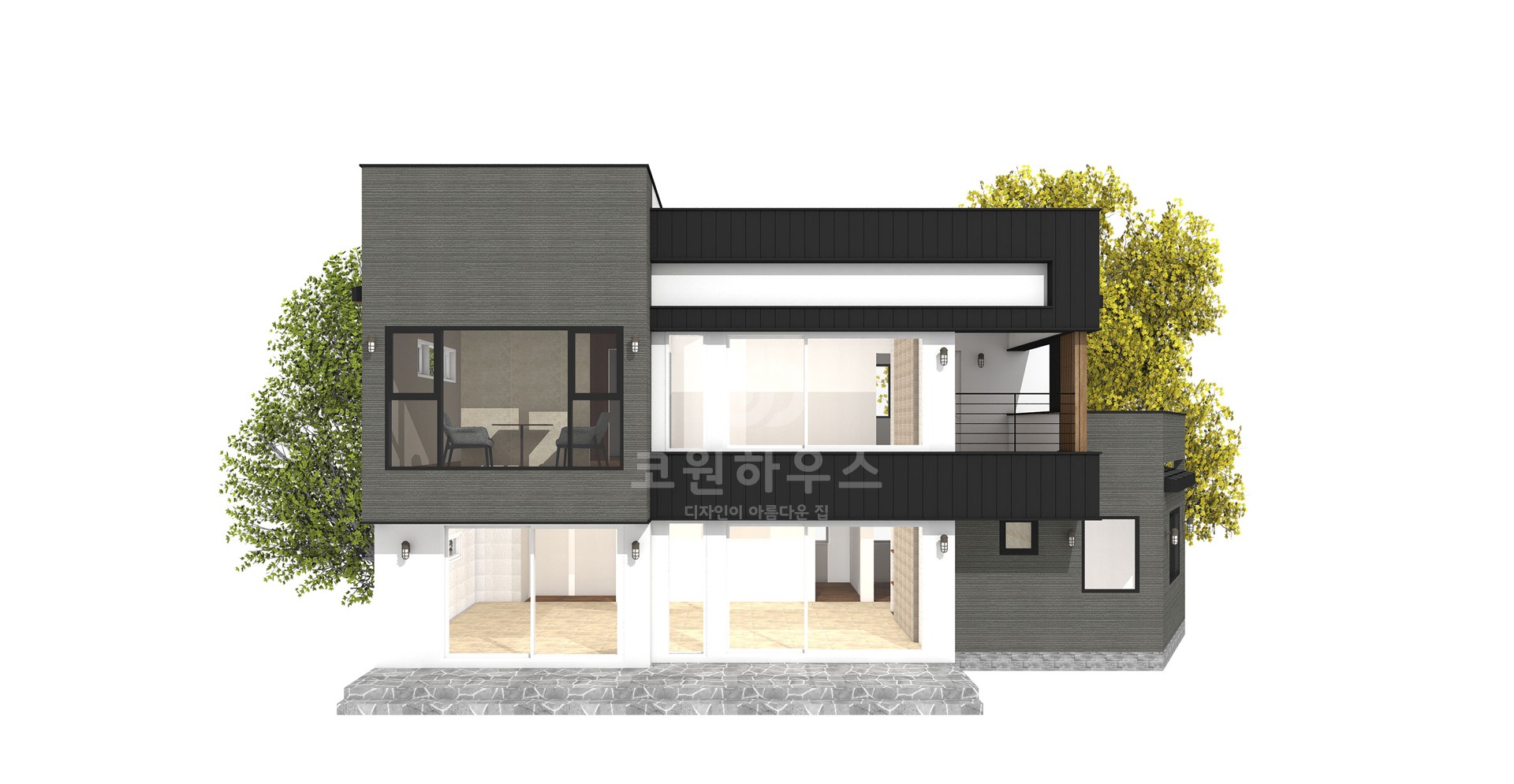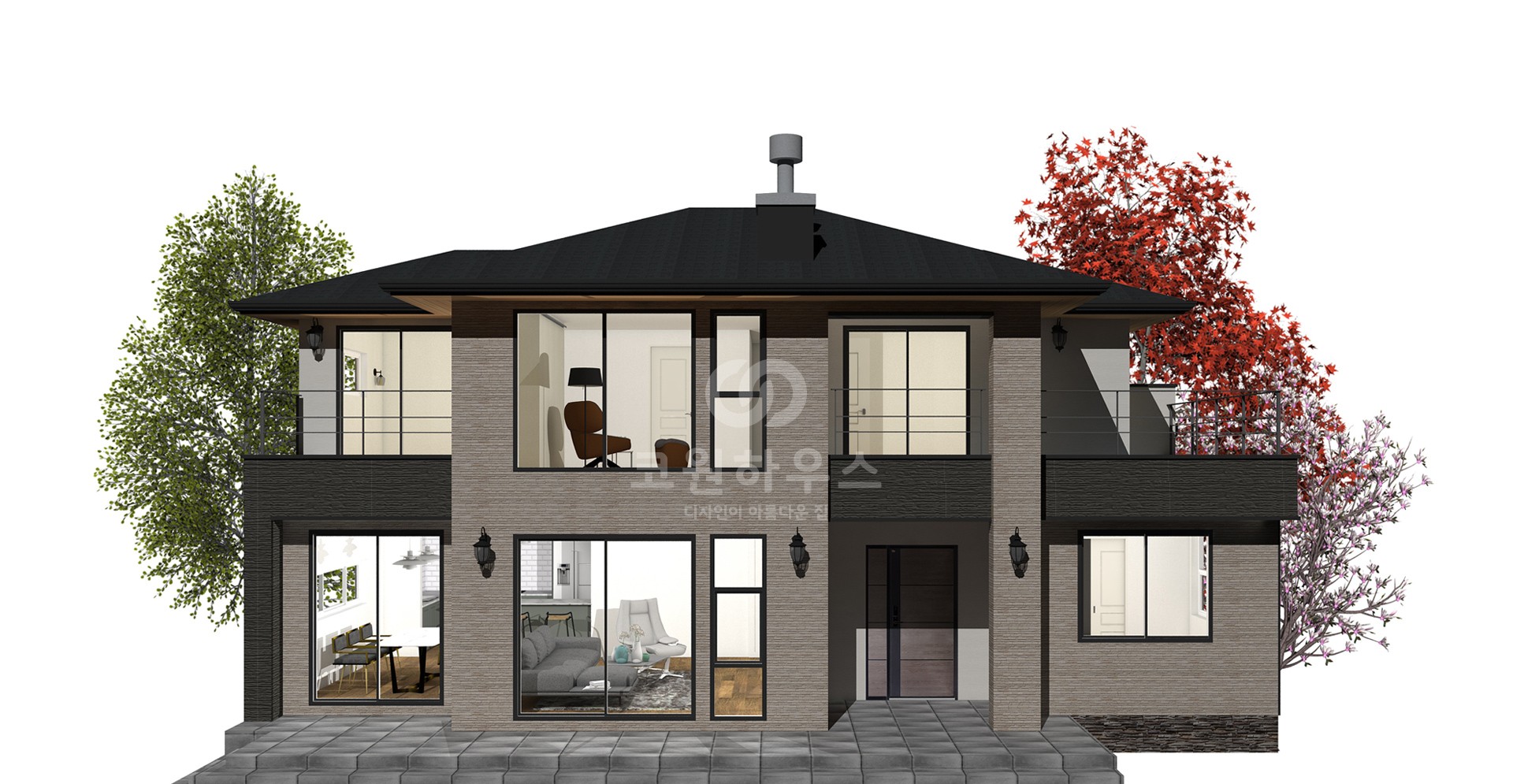외벽재 : 세라믹타일, 스타코플랙스, 적삼목