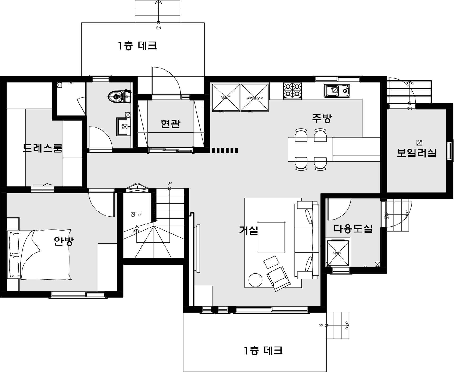 1층과 2층의 소통을 원활히 하였으며, 각층마다 주방과 가족실을 만들어 2세대가 같이살수있도록 계획되었다.