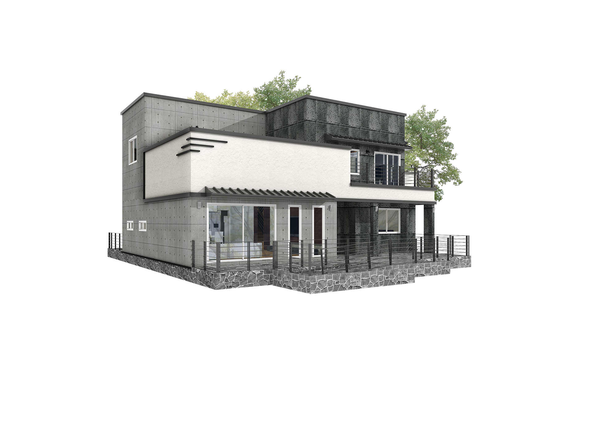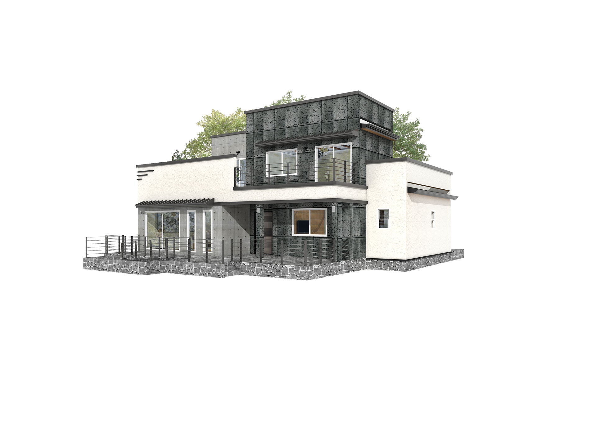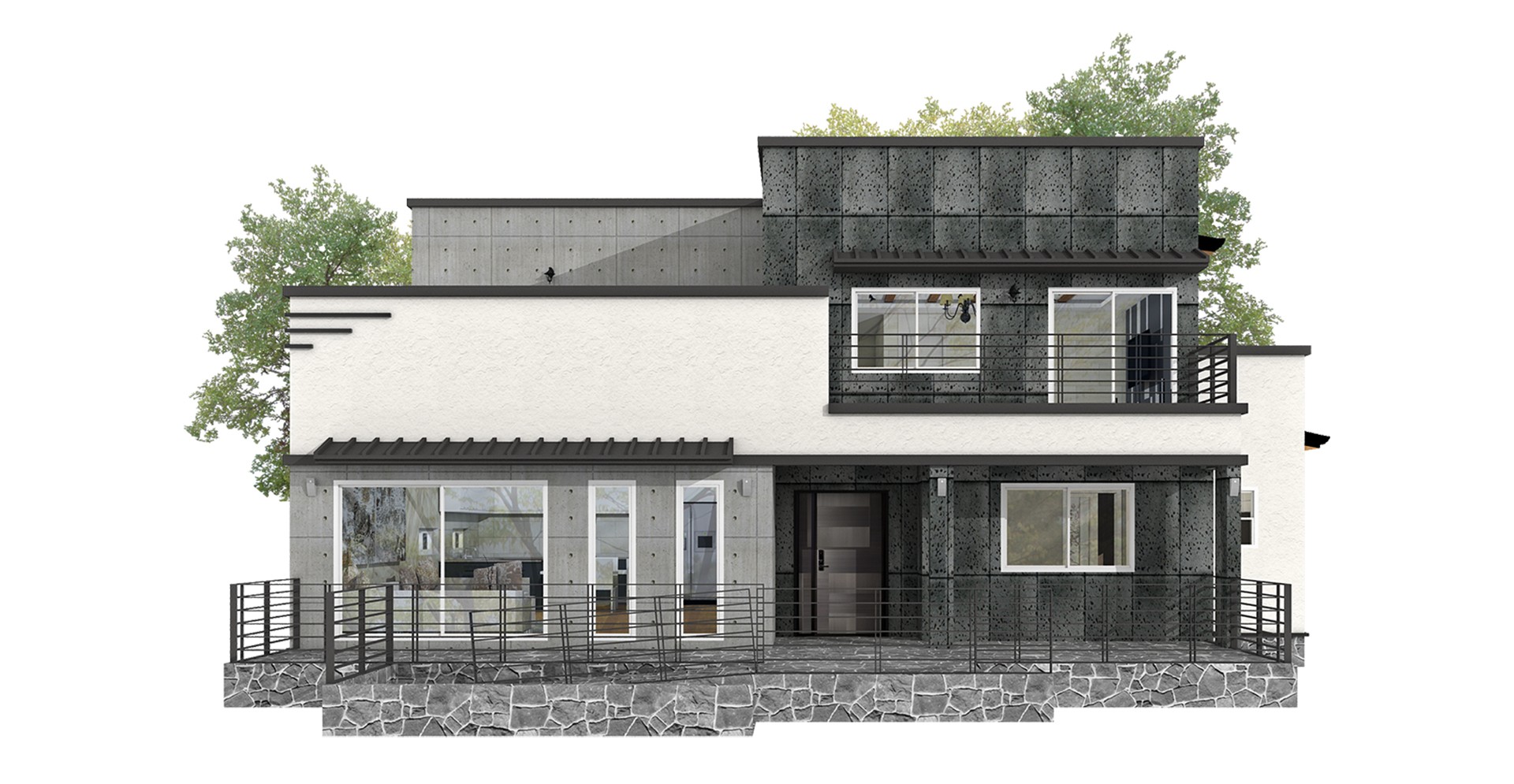 62평형 음성 성본리|경사지붕이 감추어지는 형태로 계획된 모던형 주택, 외장재료는 스타코플렉스, 현무암,