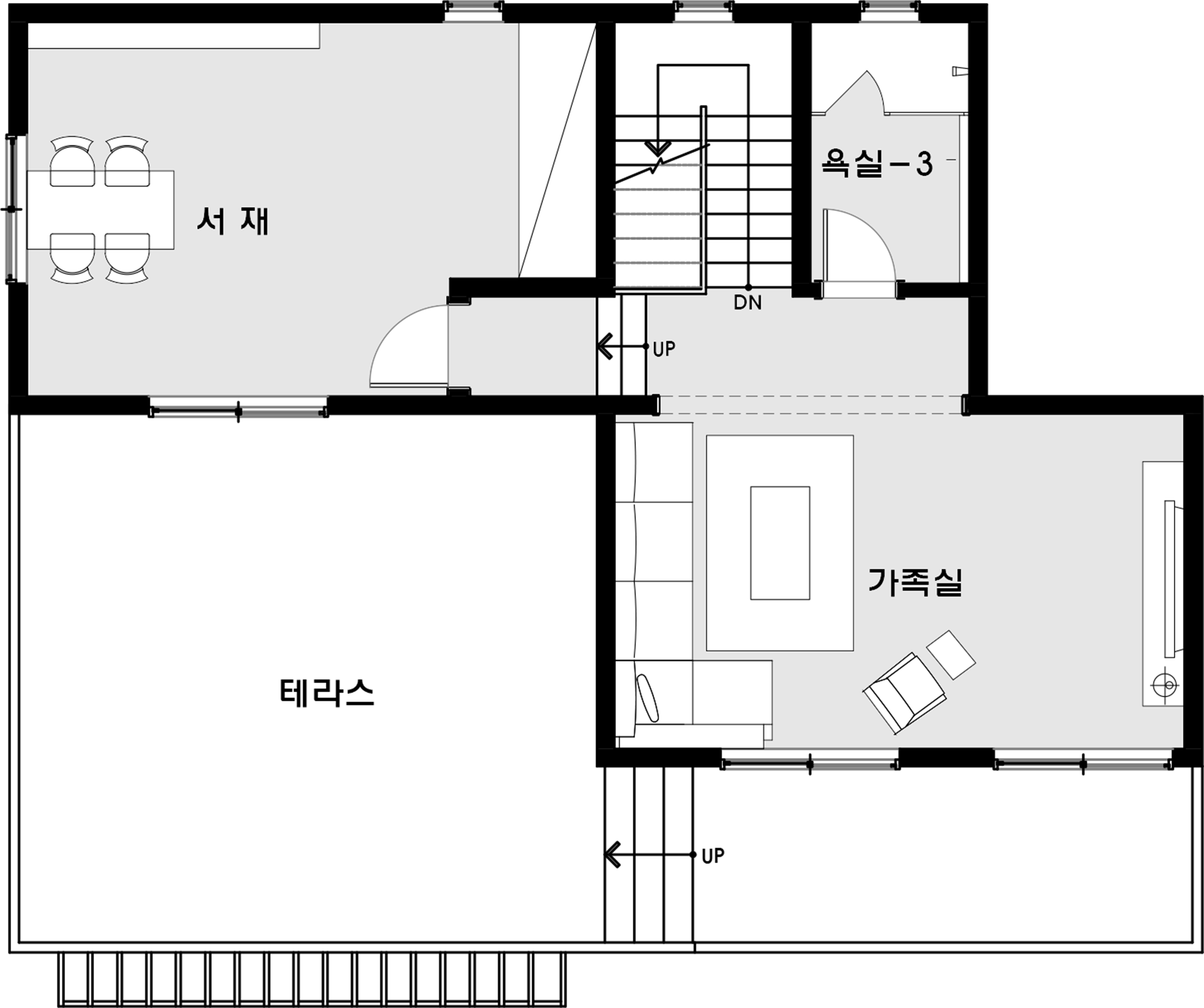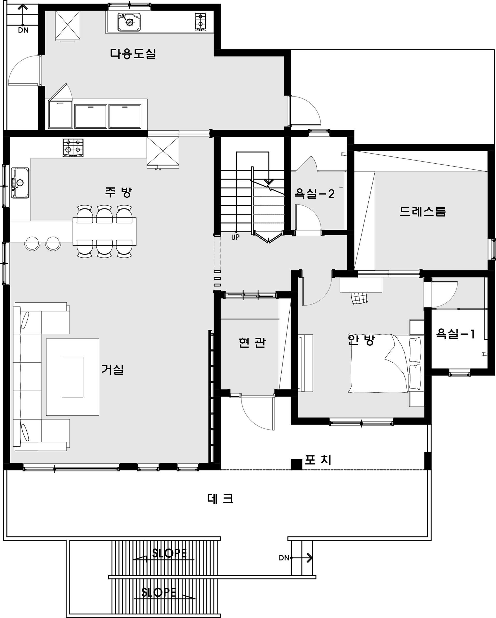다용도실과 드레스룸등의 면적을 더확보하여 수납공간을 특화한 주택
