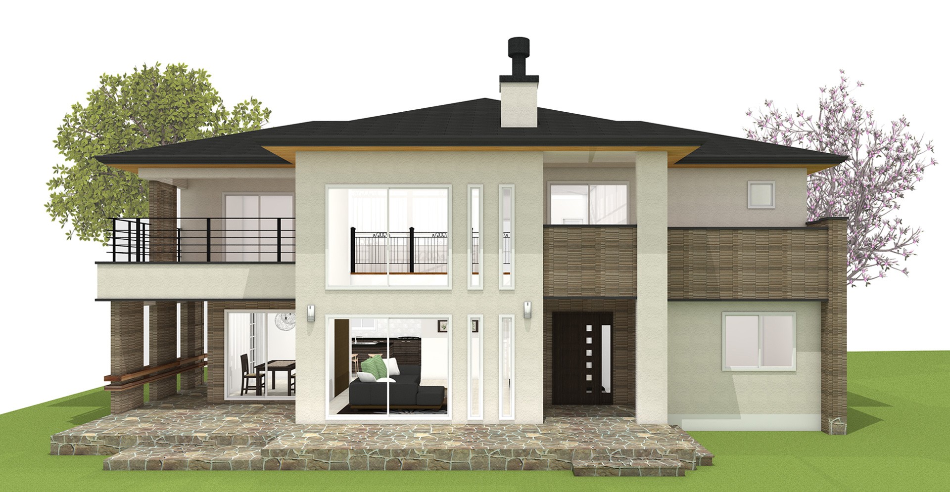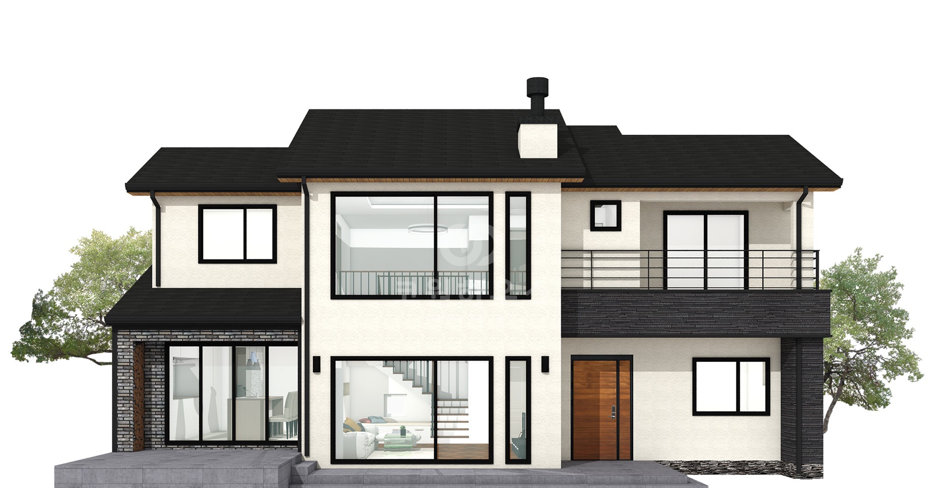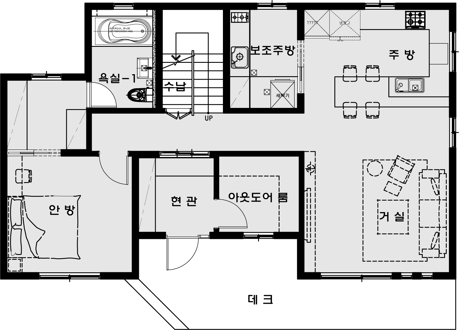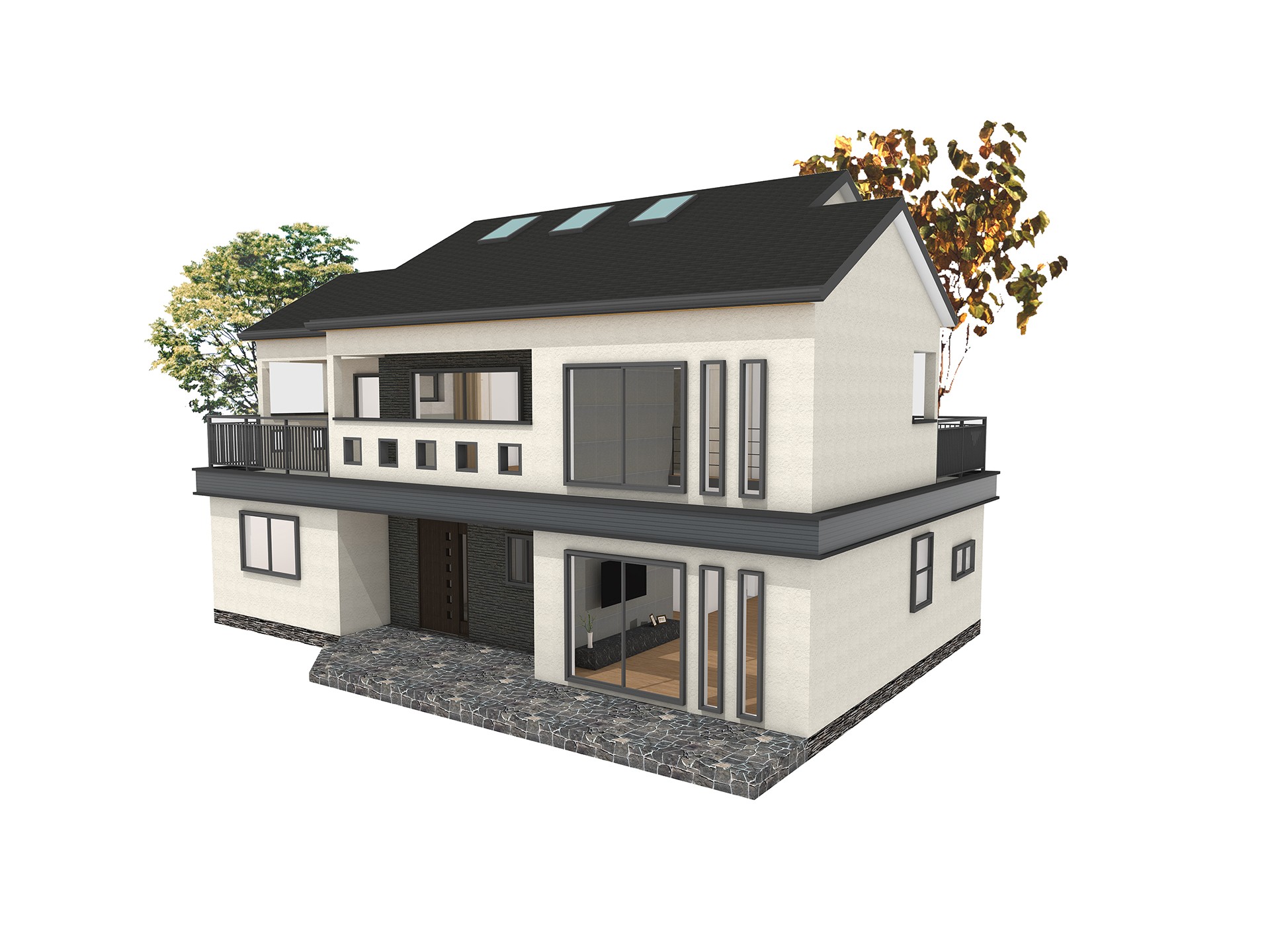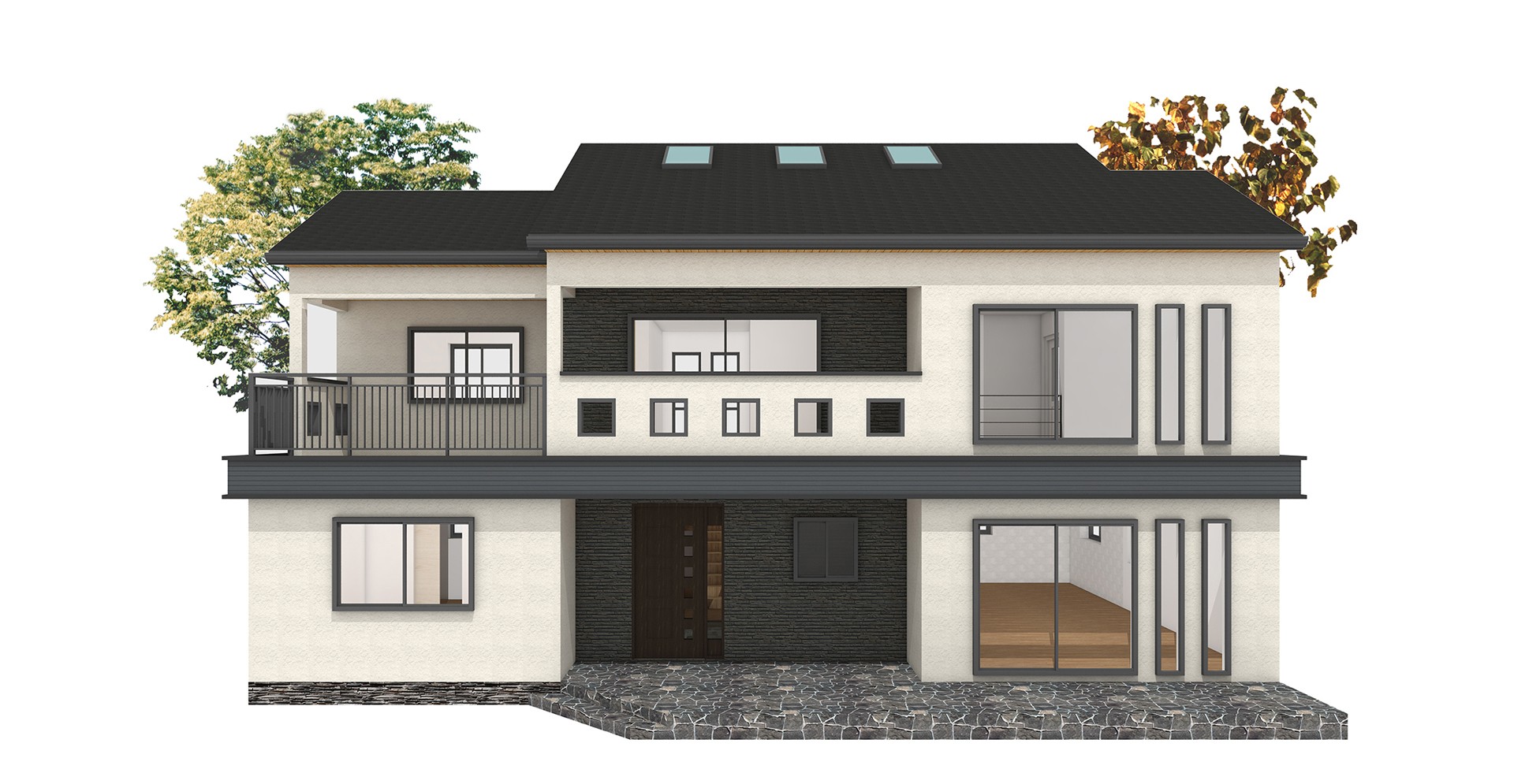 56평형 아산 장재리|흑백의 대비를 통해 깔끔함과 모던함을 강조하였고 부분적 매스의 분리는 재료를 달리해 표현하였다. 흑색계열의 세라믹 지붕을 통해 차분한 느낌이 들게하였고 그아래 작은 매스분절을 통해 지루하지 않은 집이 되게 하였다. 부부와 2자녀를 위한주택으로 1층은 부부공간, 2층은 자녀공간으로 계획하였다. 캠핑계획이 많은 남편분을 위해 현관에 아웃도어룸을 설치하였고, 모자란 수납공간은 다락방을 이용하도록 하였다 2층은 자녀를위한 공간으로 넉넉한 침실, 소규모 간이주방, 2개의 화장실을 설치했다.