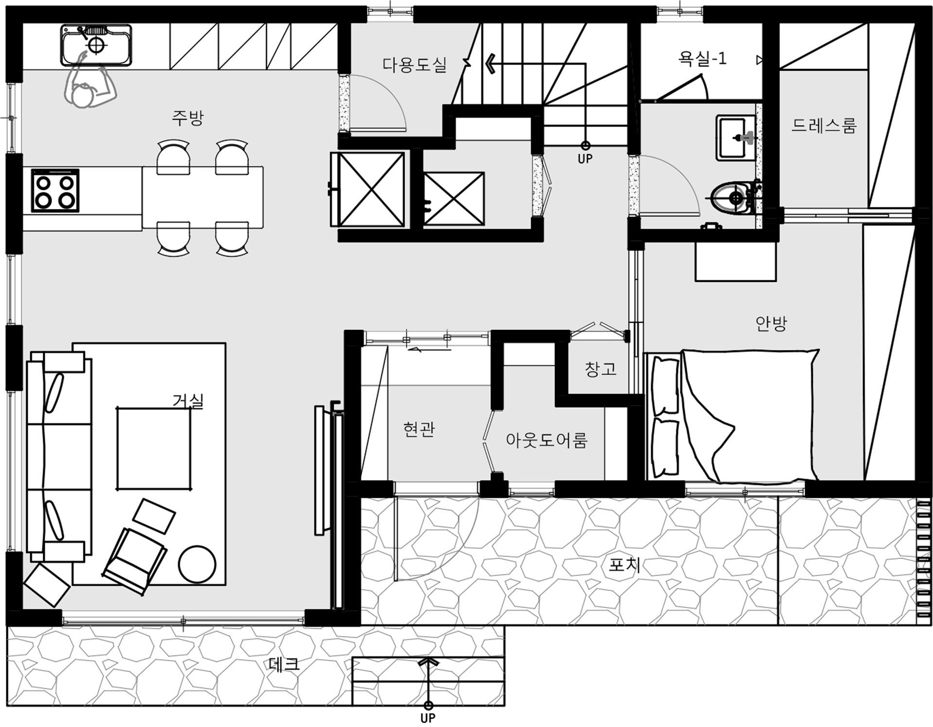 포치+데크 : 17.36+8.32㎡ (7.77평)