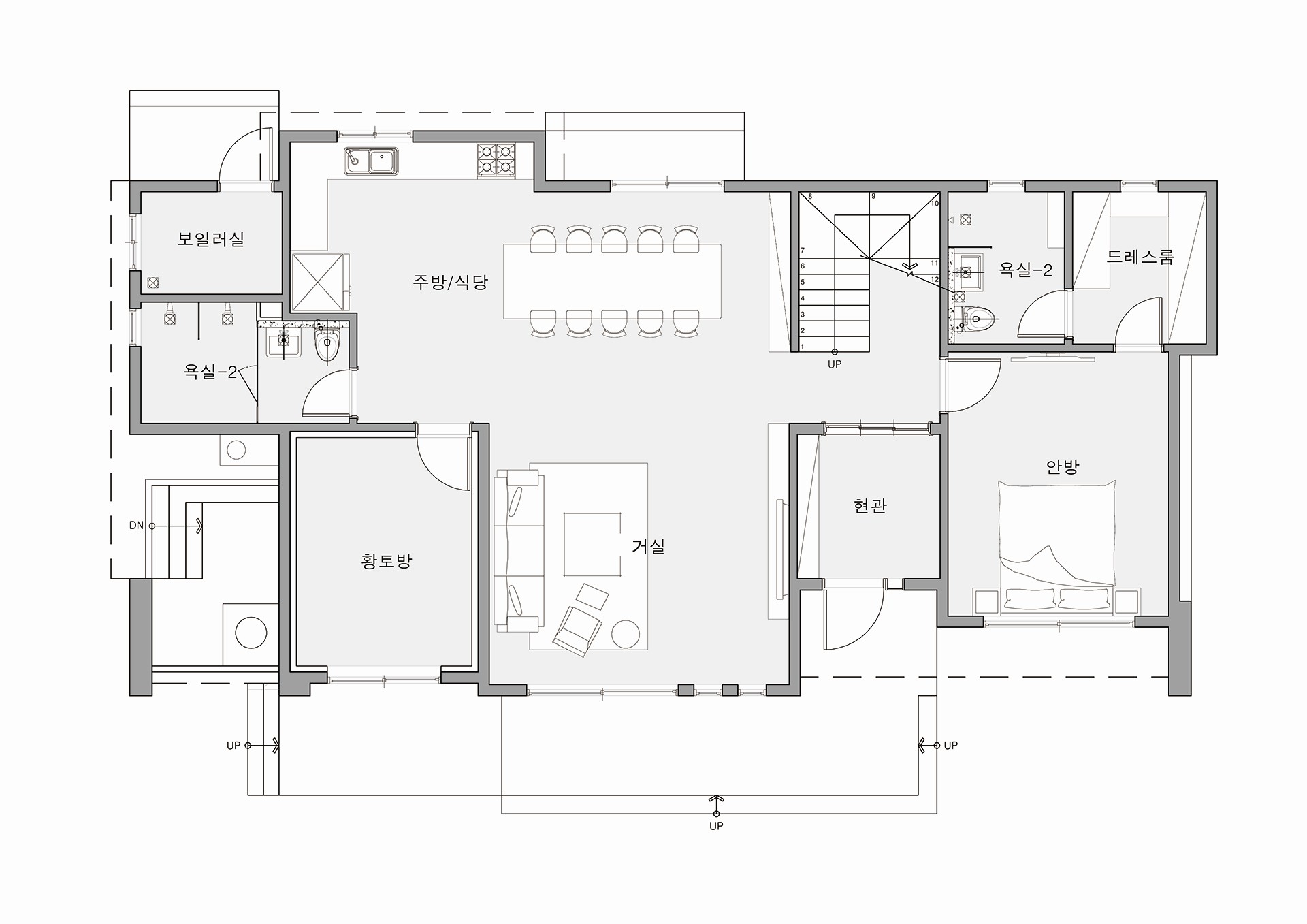 도란도란 이야기를 나눌수 있게 아궁이 주변으로 넉넉한 공간을 설계하였다.