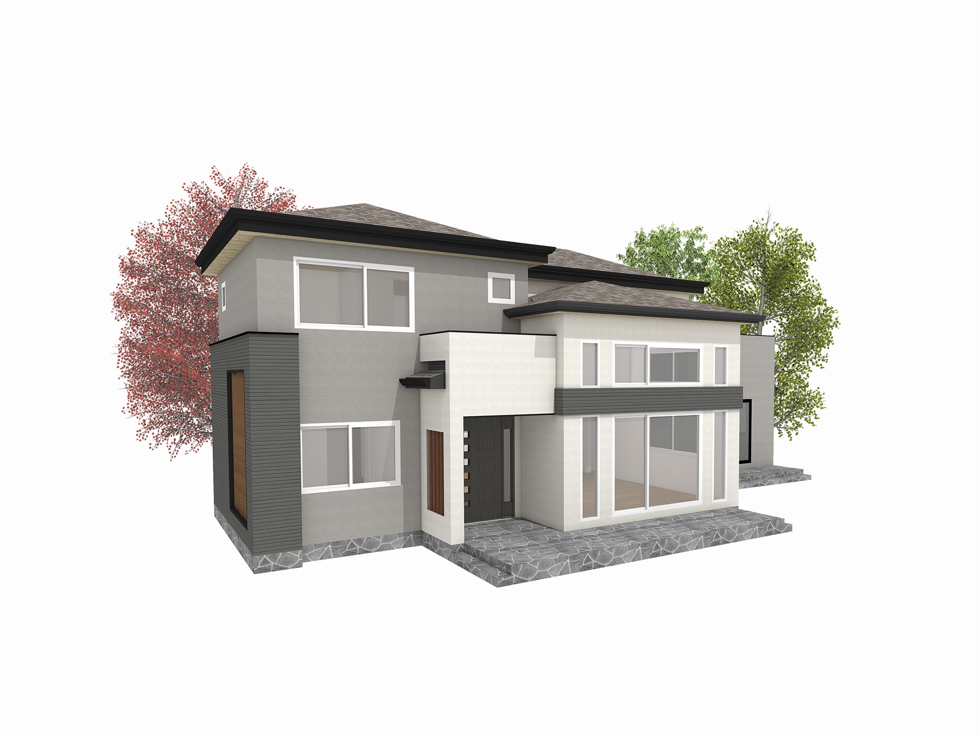 구조 및 규모 : 미국식 경량목구조 / 지상2층|지붕재 : 이중그림자슁글 외벽재 : 스타코, 세라믹타일 창호재 : 22mm 로이 2중 유리 독일식시스템창호 구조 : 철근큰크리트, SPF NO.2 단열재 : 인슐레이션(내벽:R-13, 외벽:R-21, 지붕:R-32) 내장재 : 실크벽지, 대리석타일 아트월, 타일, 디자인판넬 바닥재 : 강마루 천장재 : 인테리어 천장, 등박스