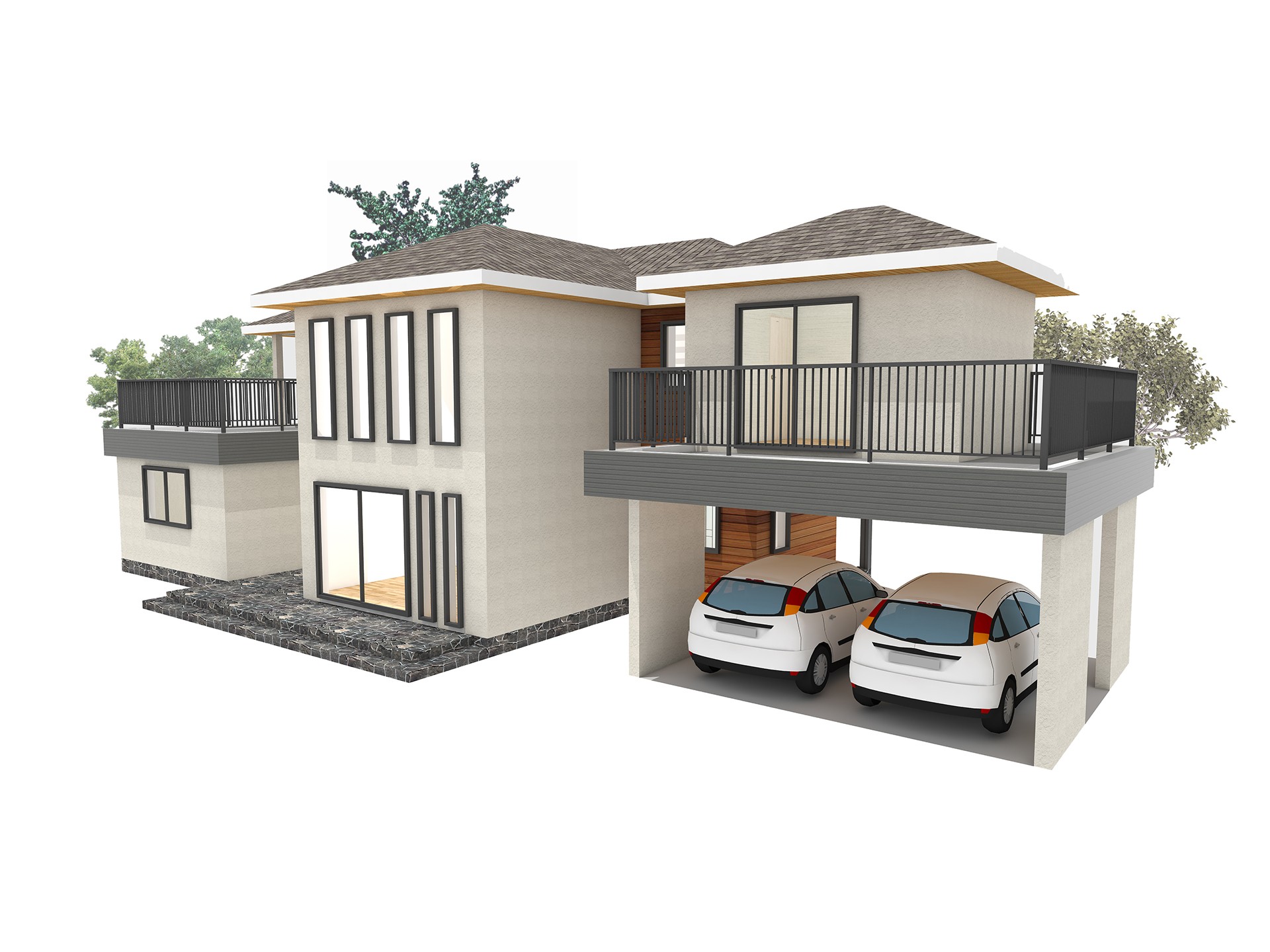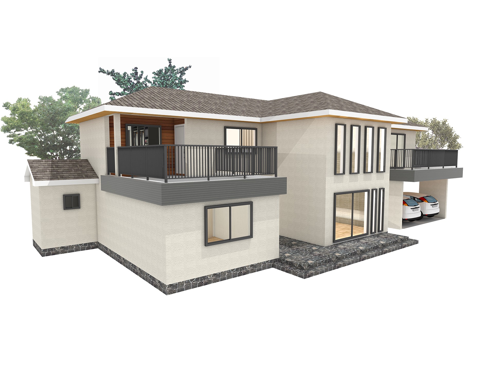 51평형 충주 광월리|전체구성은 3개의 매스조합으로 이루어졌고, 스터코마감에 세라믹사이딩,목재로 포인트를 주어