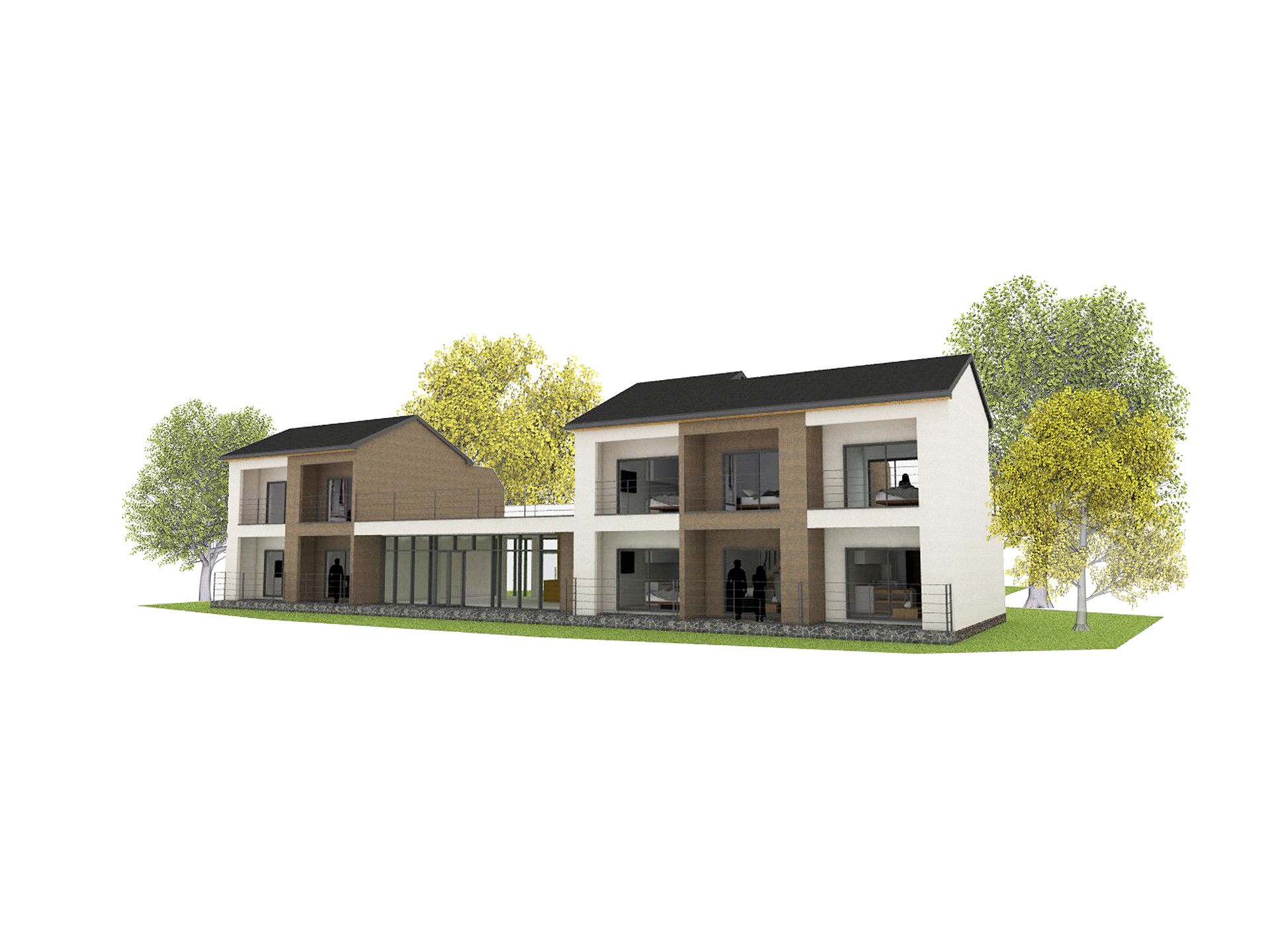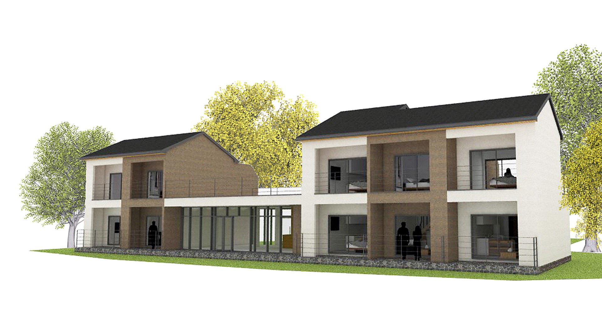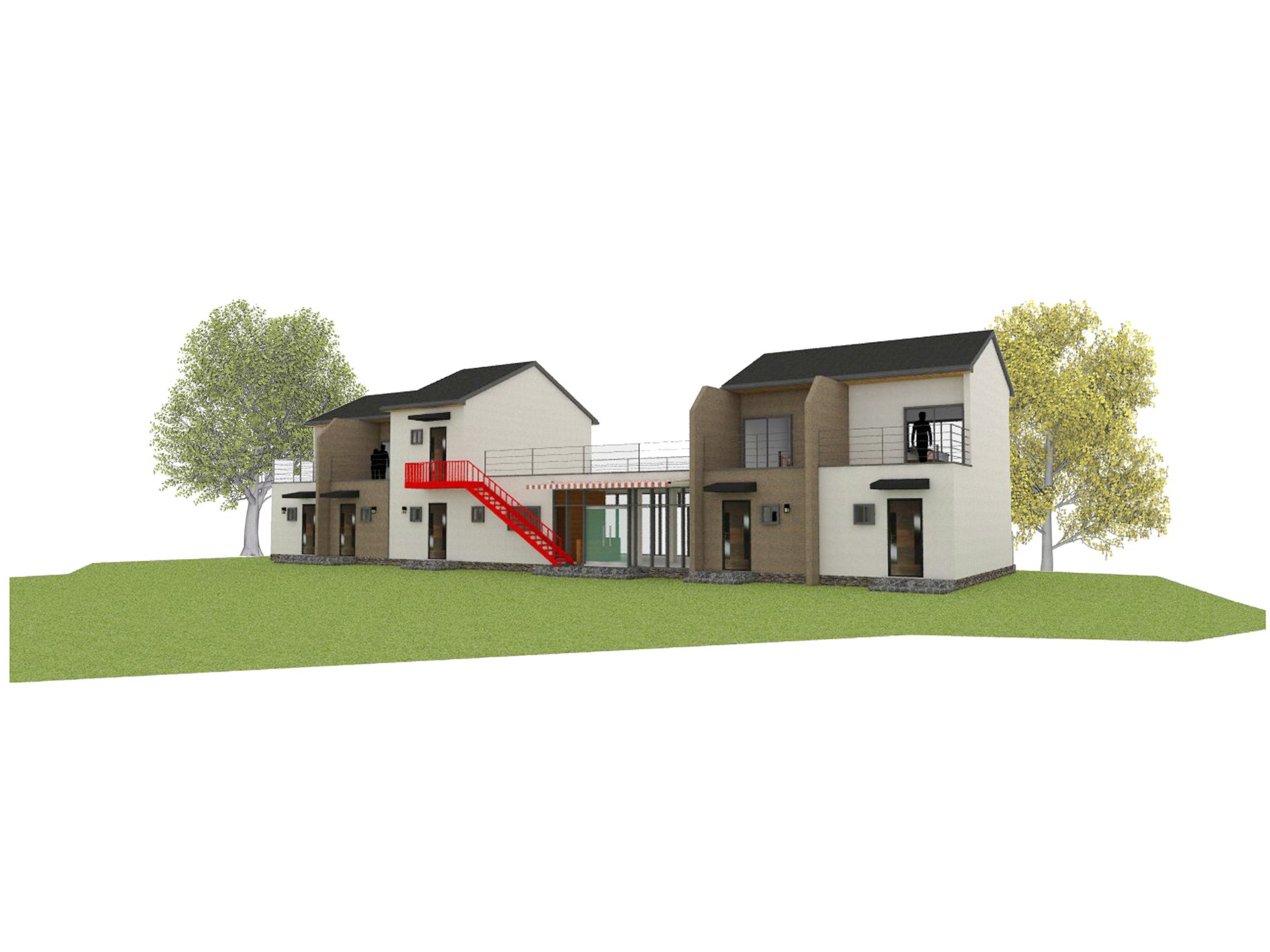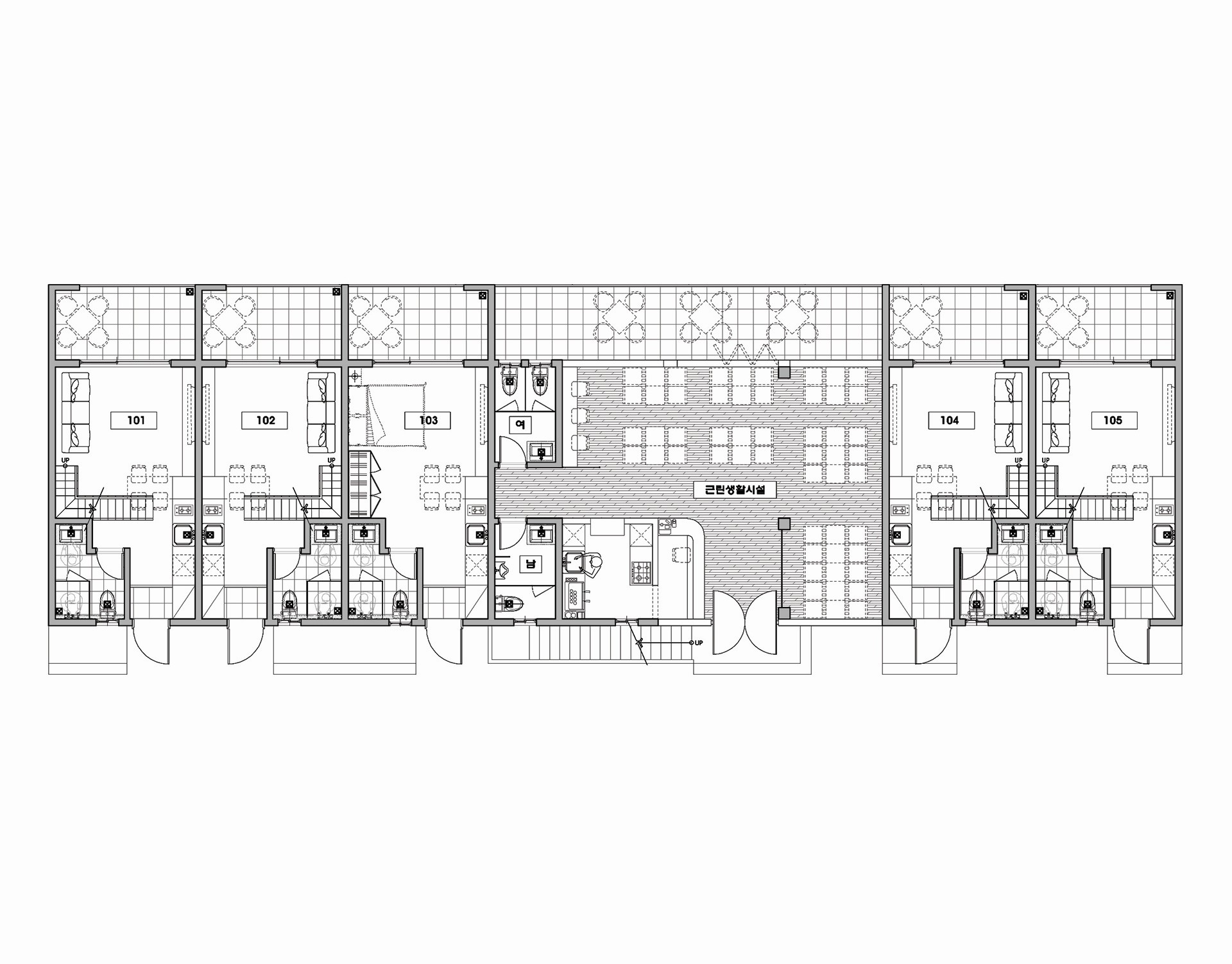 95평형 제주 애월읍 고내리|스터코플렉스의 색대비와 짙은지붕의 조화로 모던하면서 클래식한 분위기의 펜션 및 근린생활시설 4개의 복층형 객실과 2개의 단일 객실로 건축주가 직접 거주하며 운영하는 펜션으로 전체 매스를 두개의 매스로 나누고 전면에 격자면을 사용하여 단조로운 매스를 분절시킴 매스사이의 1층에 근생을 두고 근생상부는 옥상을 두어 다용도로 사용할수있도록 설계