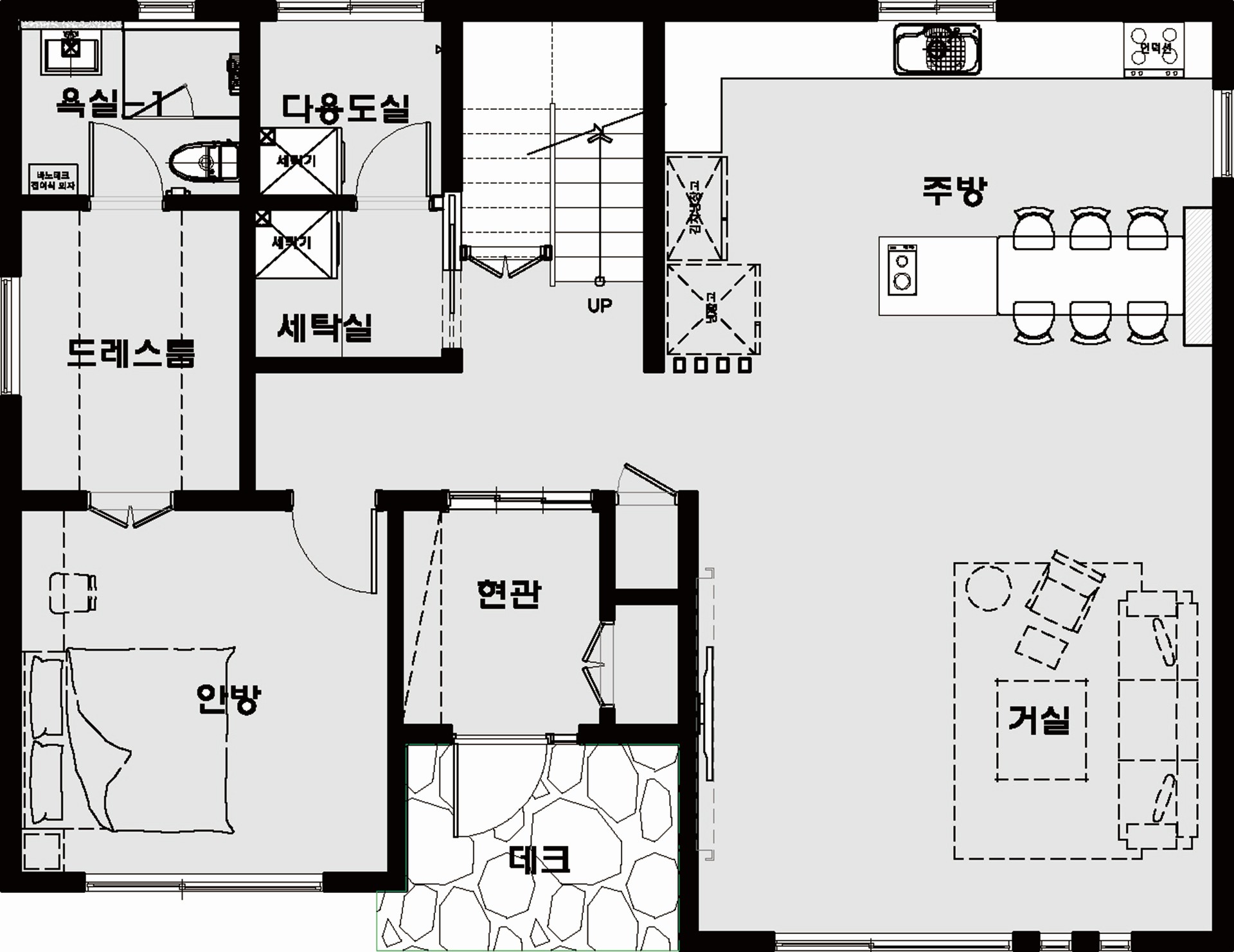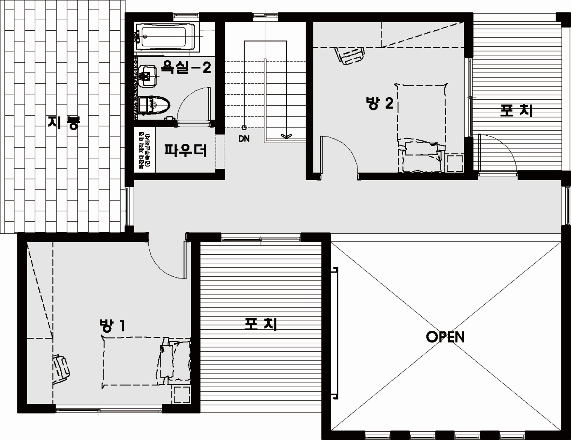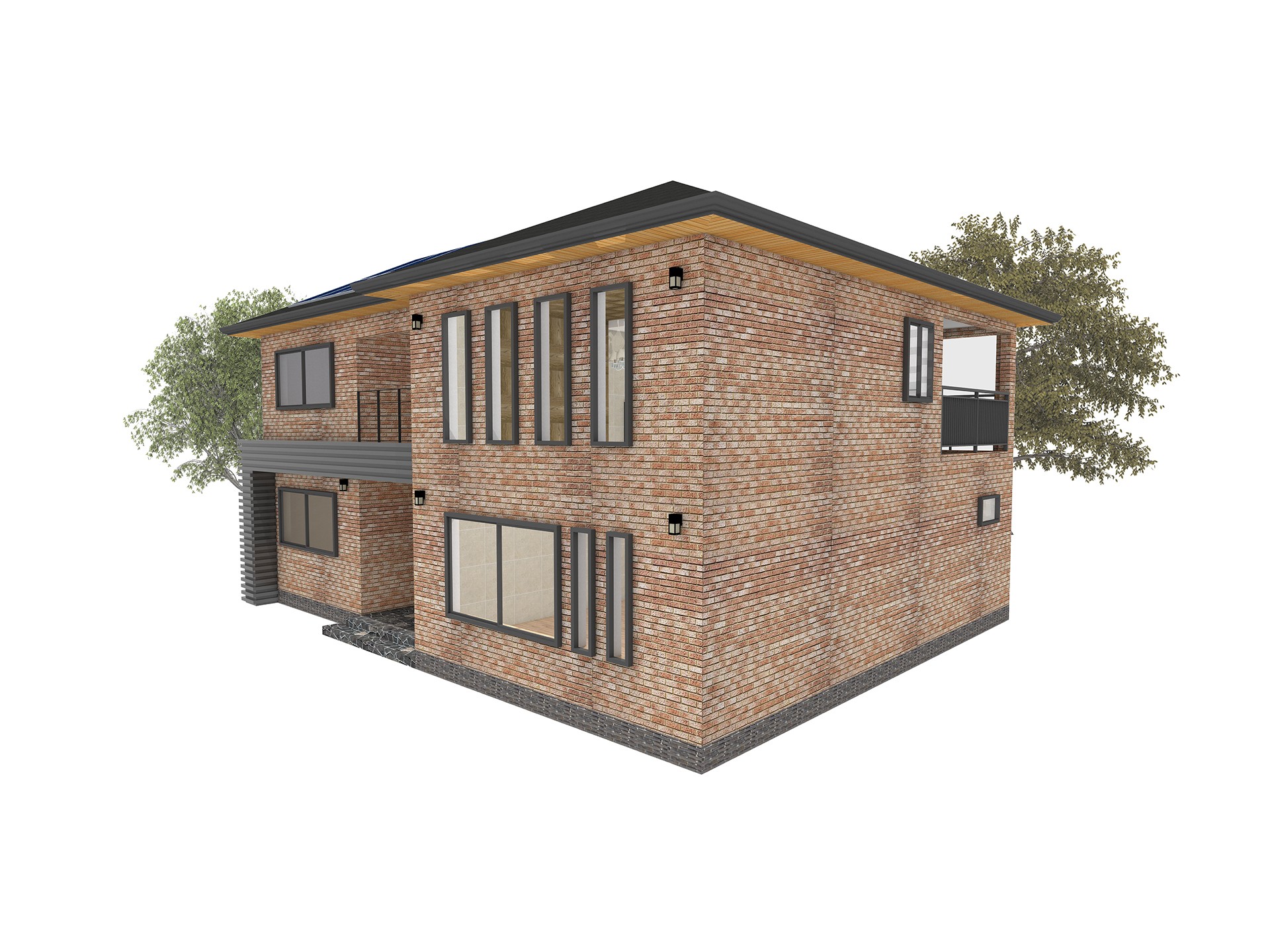 56평형 청라 8호 | 적벽돌 외부마감과 부분적인 매스의 변화를 통해 오래보아도 지루하지 않은 건물로 계획하였다. 모임지붕에 쓰인 짙은색의 세라믹 지붕재는 전체적인 안정감에 더해져 차분한 느낌의 건물로 보이게 하였다. 부부와 2자녀를 위한주택으로 1층은 부부공간, 2층은 자녀공간으로 계획하였다. 1층은 넓은 거실과 주방,안방을 두었고, 아내분의 요구에 맞춰 별도의 다용도실과 세탁실을 설치하였다. 2층은 자녀를위한 공간으로 넉넉한 침실과 포치공간의 조합으로 내부와 외부공간의 적절한 배치를 하였다.