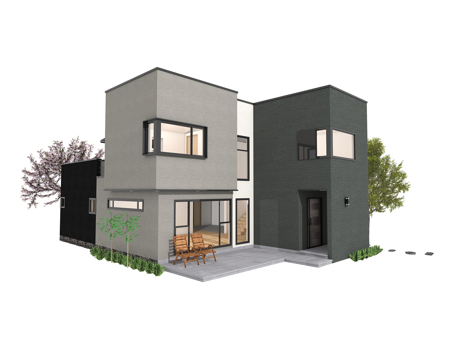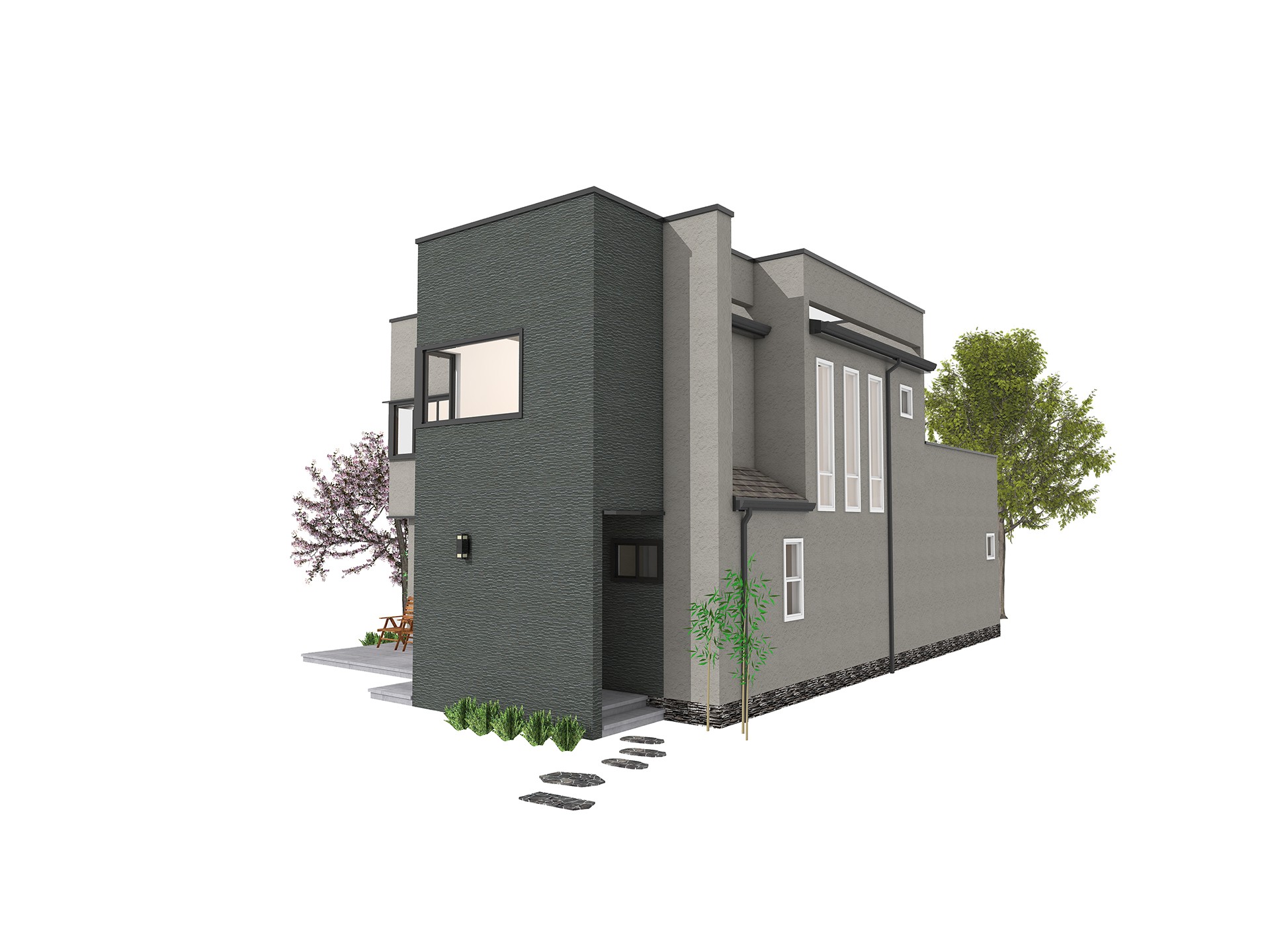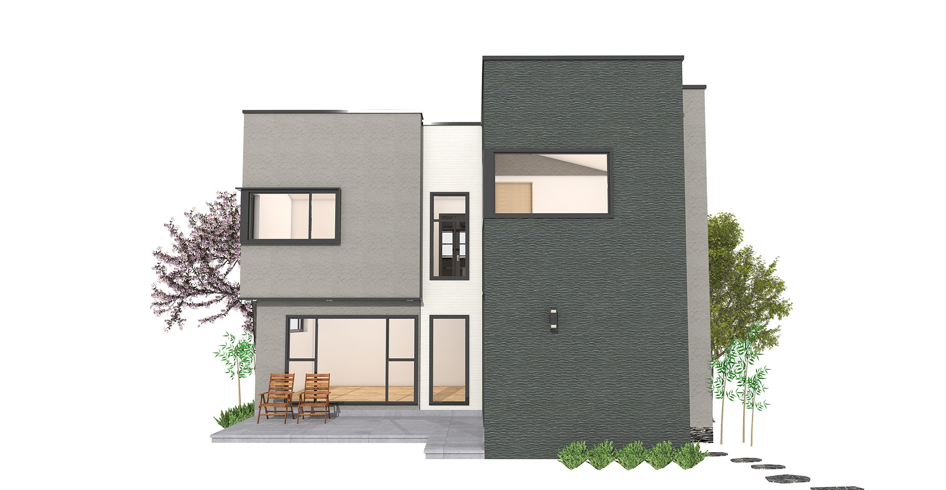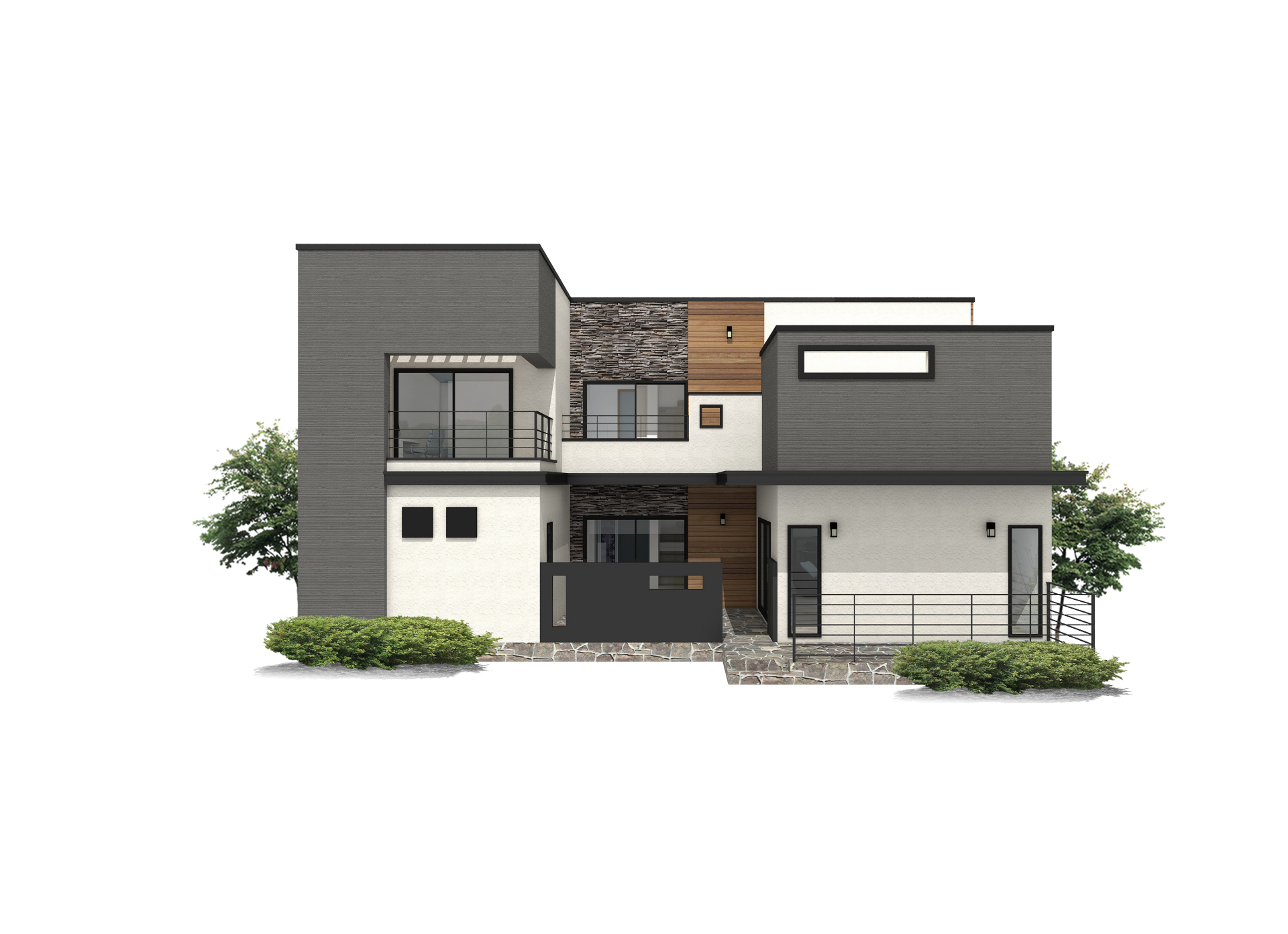 49평형 고양 성석동|투톤느낌의 모던한 박스형태에 창호로 포인트를 준 모던주택 진입로부분 현관에 조명디자인적으로 포인트를 줬으며, 프라이버시를 강조한 평면으로, 현관을 들어섰을 때 거실은 단층이지만, 오프닝 계단실을 통해 답답하지 않은 구조를 갖고 있으며 거실과, 주방은 인접하되 분리를 시켜 구성을 하였다.