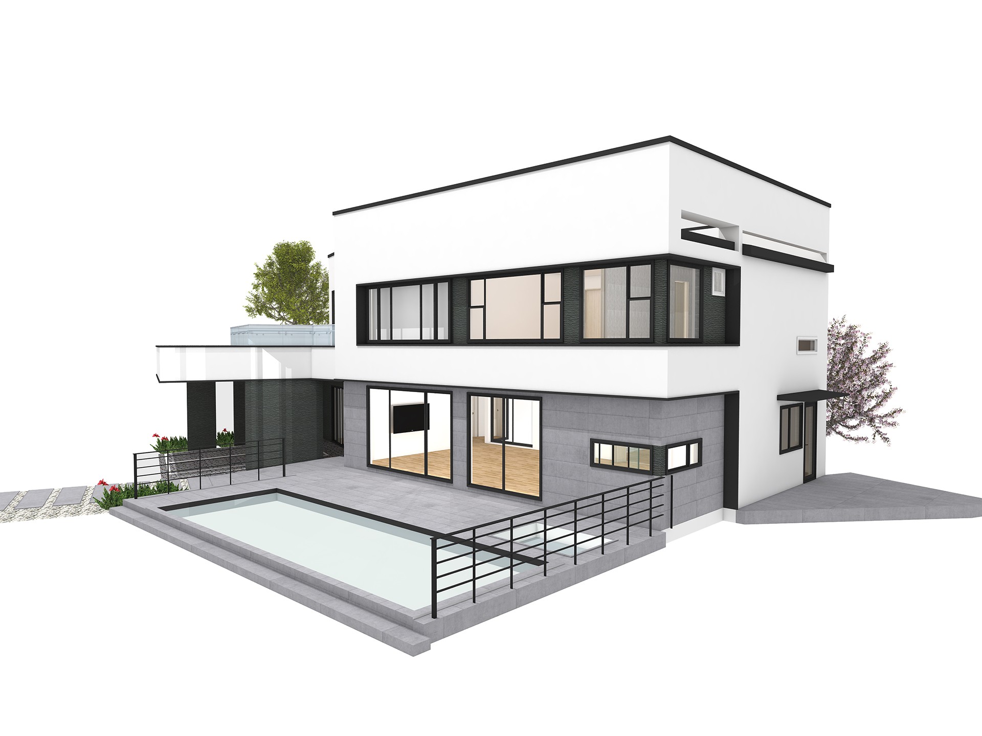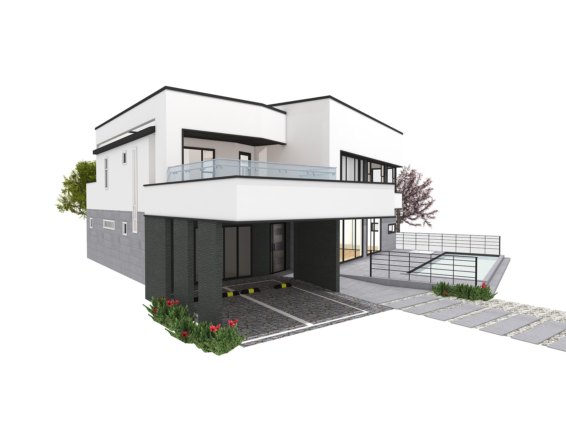 창문부분에 포인트를 준 심플한 박스형 모던주택