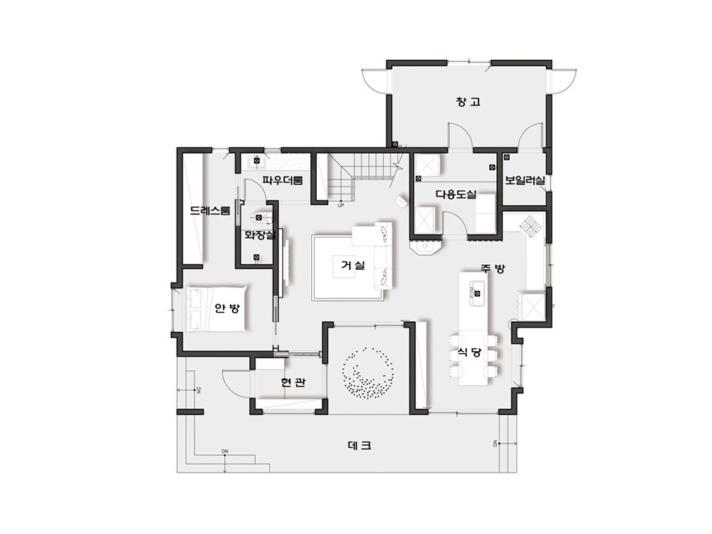 43평형 고창 산수리2|주변 자연환경과 어울리면서, 심플하지만 개성 있는 디자인의 전원주택.