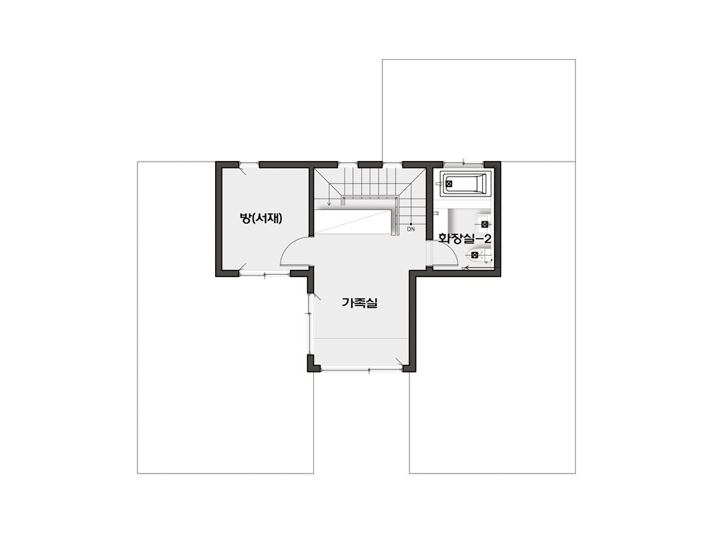 1층 현관에는 바닥에 가까운 곳에 창을 두어 발밑으로 자연빛이 들어오도록 하였으며,건물의 형태를 살려 1층 거실과 2층 가족실에서는 바깥 중정을 즐길 수 있도록 배치하였다.