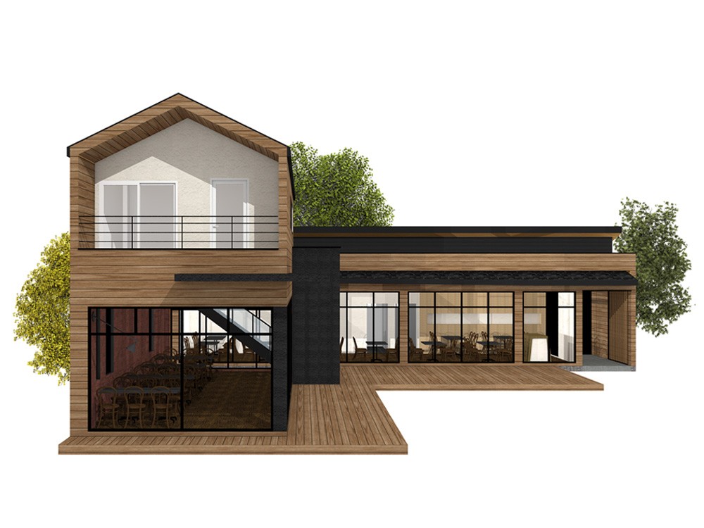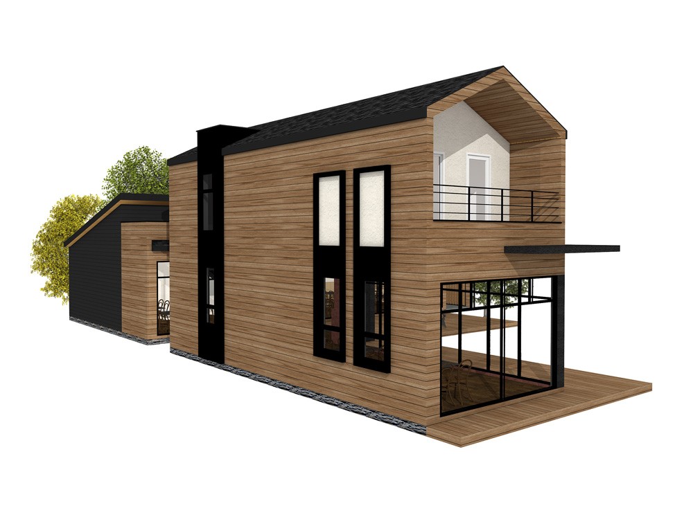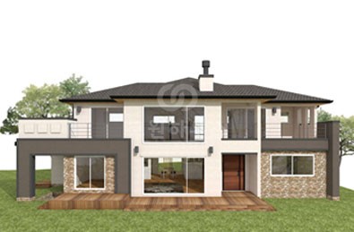 외벽재 : 적삼목 채널사이딩, 시멘트사이딩, 스타코, 징크 포인트, 방부목 데크
