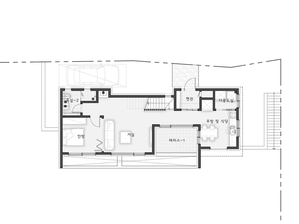 구조 및 규모 : 철근콘크리트구조 / 지하1층~지상2층|외벽재 : 드라이비트, 합성목재 사이딩(NewTechWood), 현무암 부정형 데크
