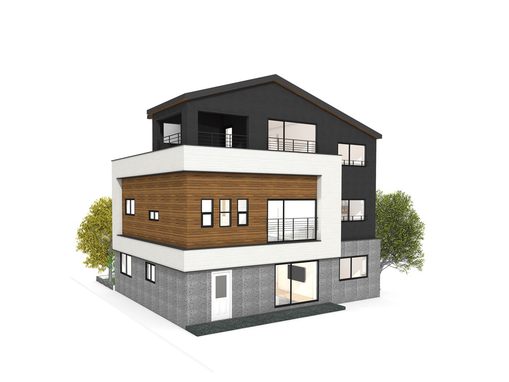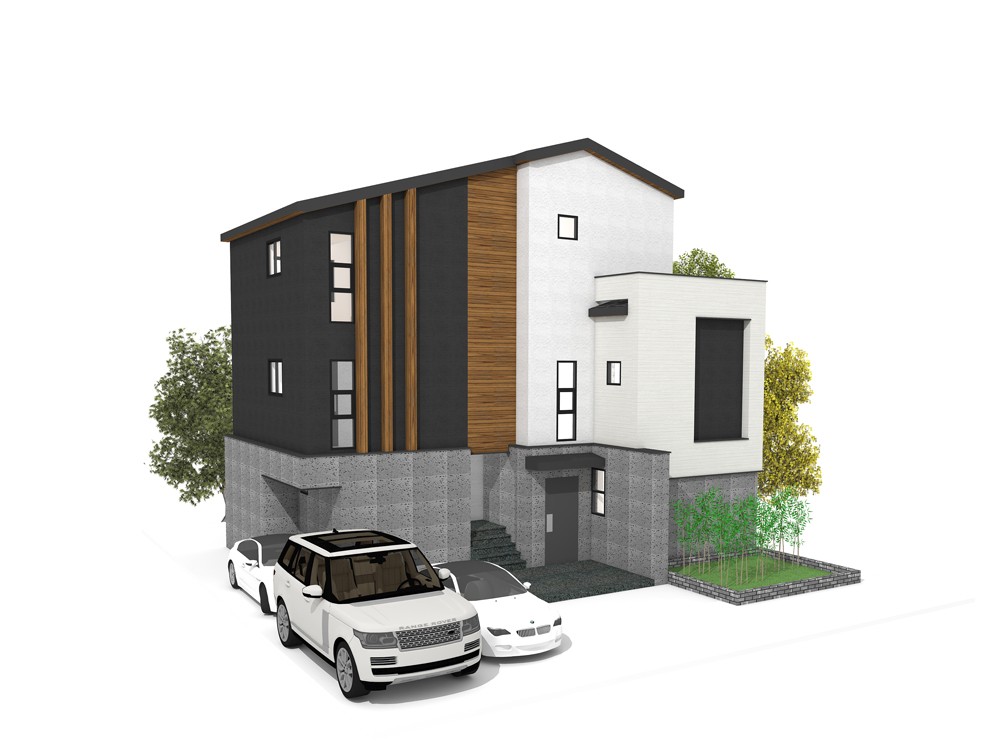 구조 및 규모 : 철근콘크리트구조 / 미국식 경량목구조 / 지상3층|외벽재 : 현무암, KMEW 14MM세라믹 사이딩, 합성목재 사이딩 (NewTechWood), 스타코, 스타코플렉스
