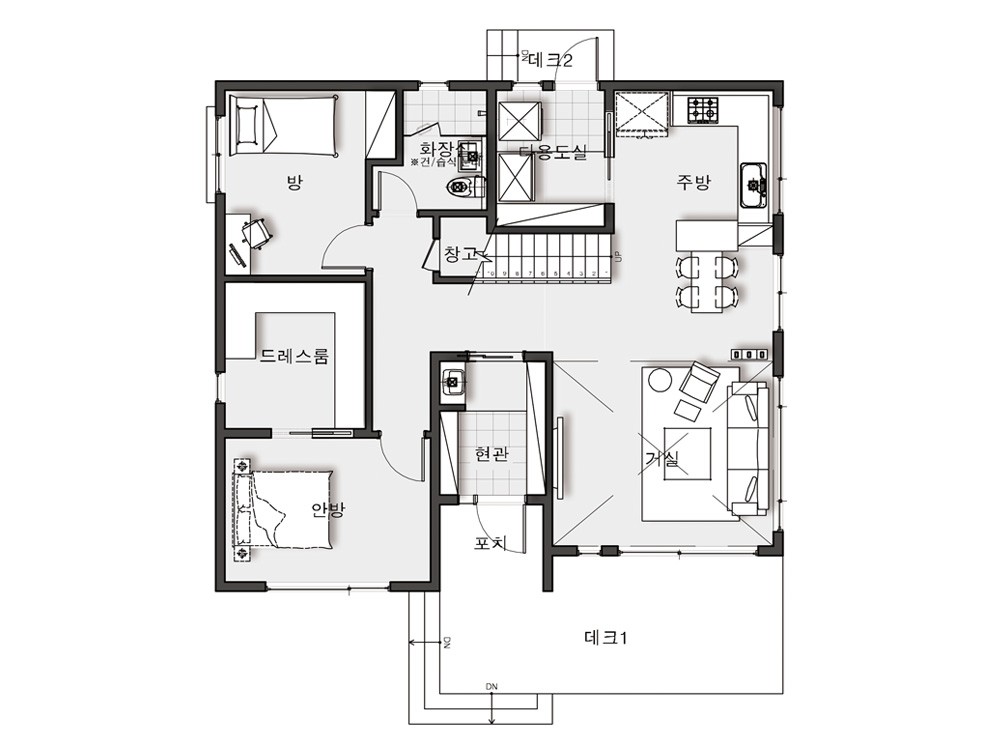 구조 및 규모 : 미국식 경량목구조 / 지상2층|지붕재 : 리얼징크