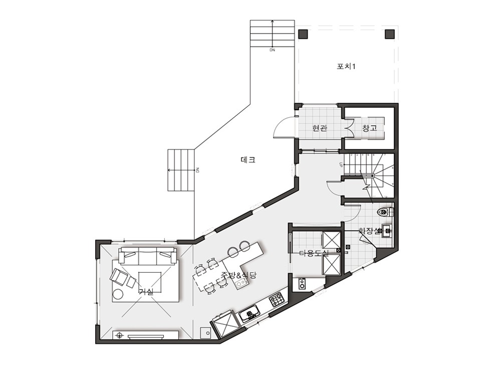 바닥재 : 강마루, 포셰린타일, 자기질타일