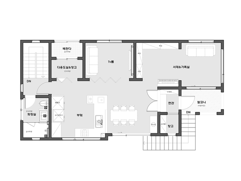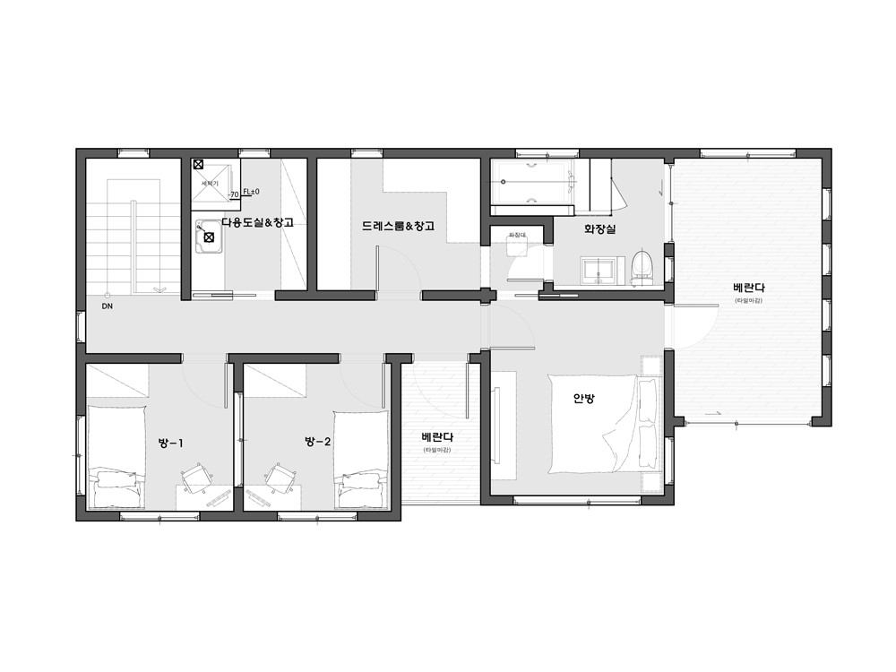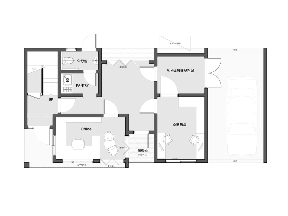 단열재 : 인슐레이션(내벽:R-11, 외벽:R-24, 지붕:R-38)