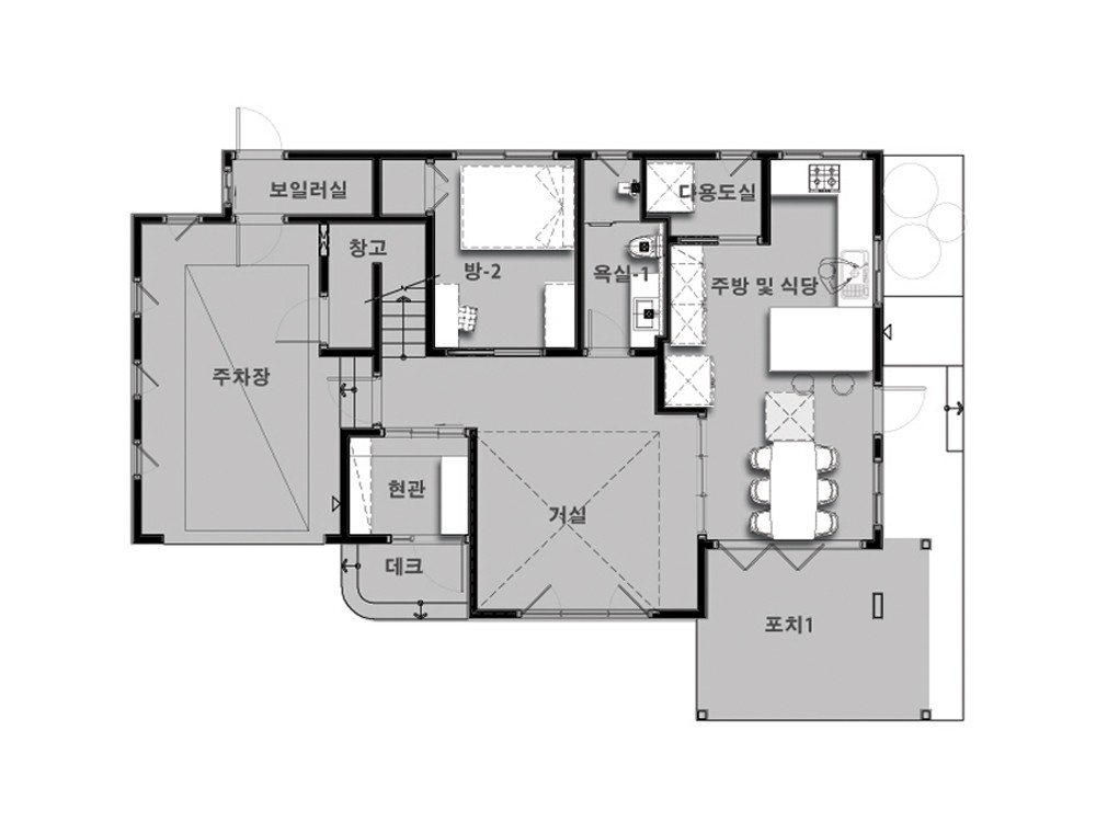 바닥재 : 원목마루, 포셰린타일, 자기질타일