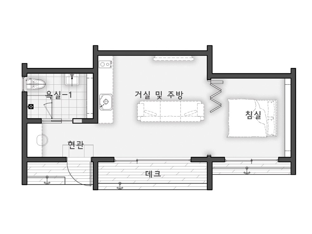 외벽재 : 스타코플렉스, 청고벽돌타일, 합성목재 데크 (NewTechWood)