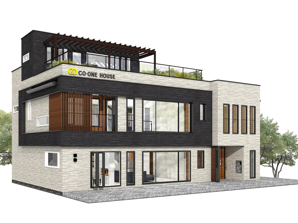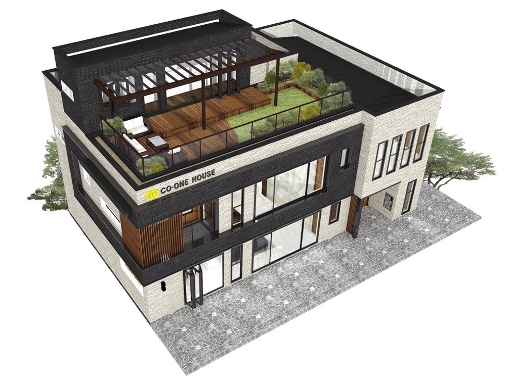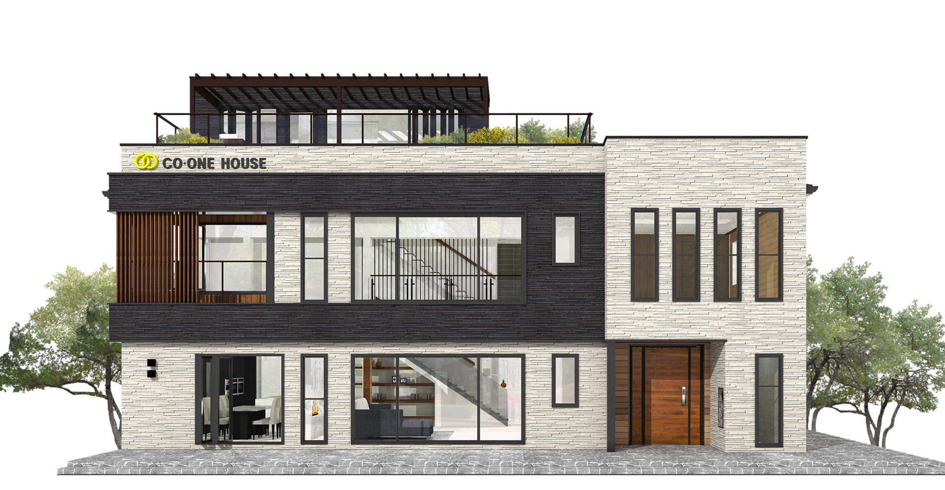 외벽재 : 스타코플렉스, 세라믹사이딩(18T 토레이), 합성목재(NewTechWood)