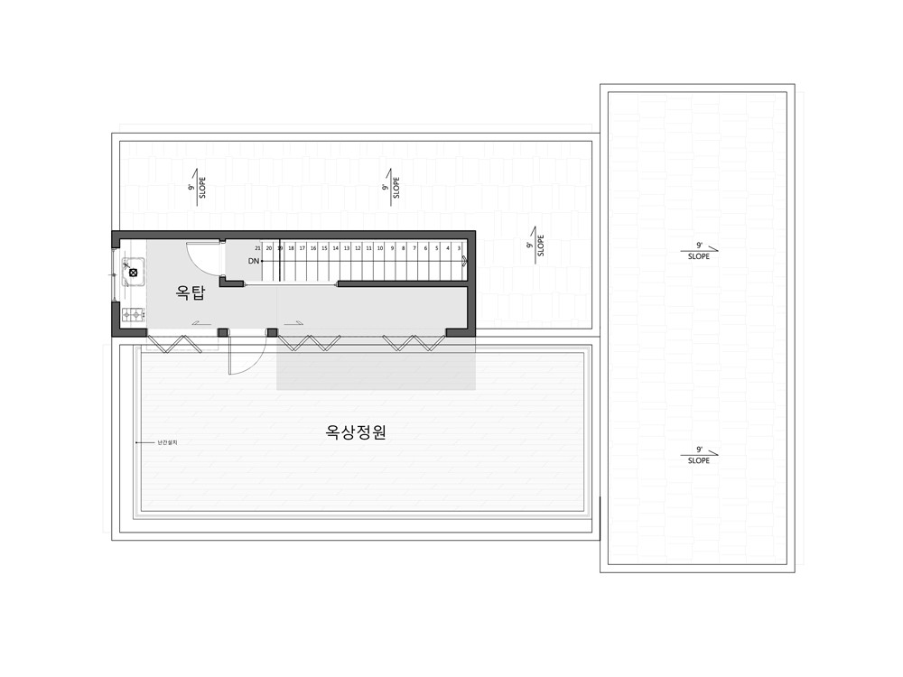구조 및 규모 : 미국식 경량목구조 / 지상1층, 지상2층, 옥탑|지붕재 : 한경인 방수지붕
