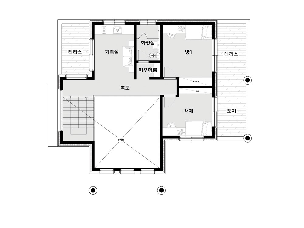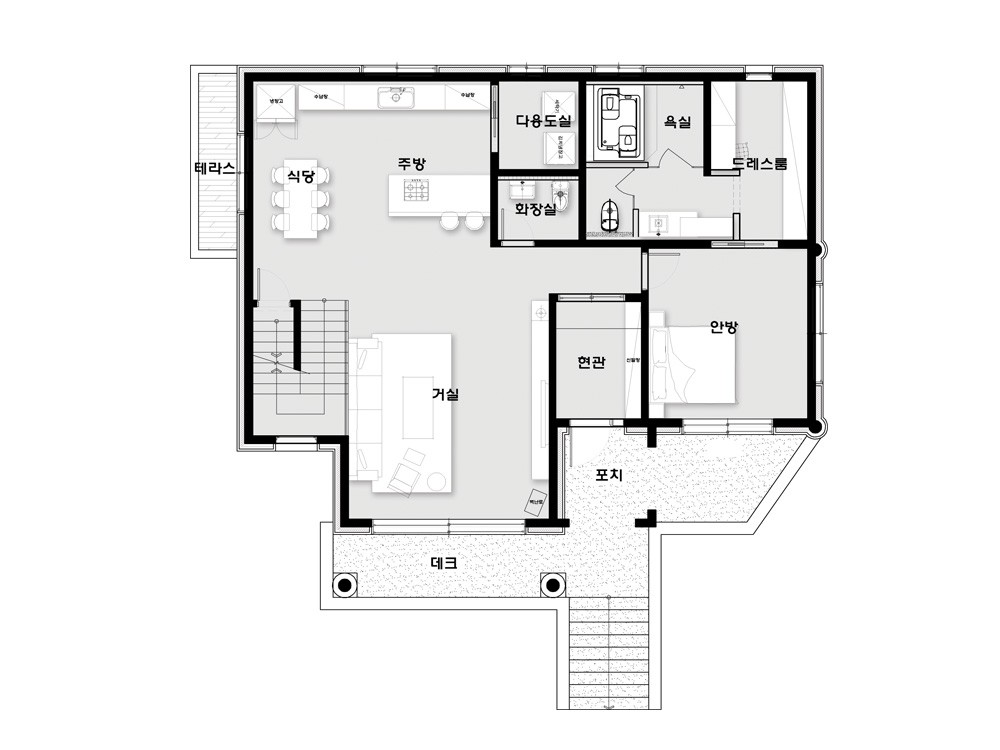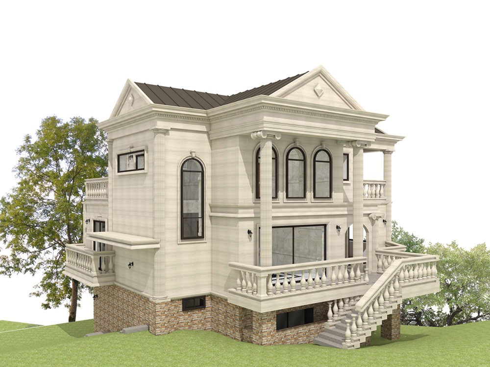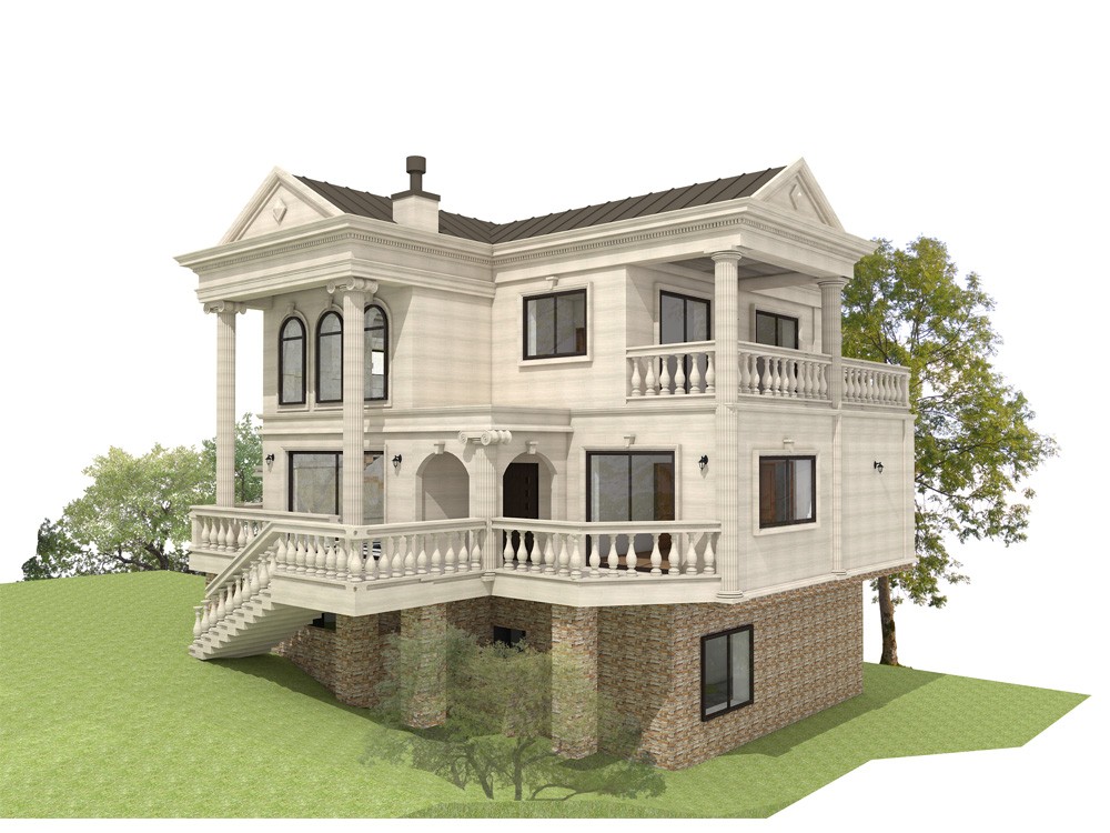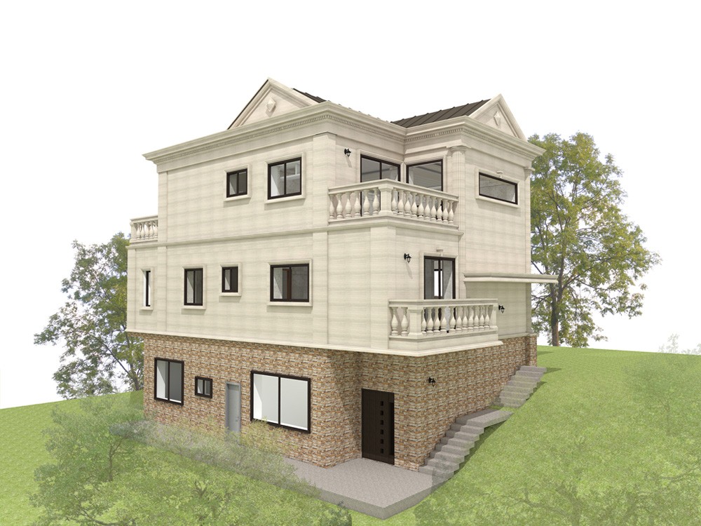 94평형 여주 신진동|고급자재인 천연라임스톤을 전면에 사용하고, 형태는 그리스 신전을 형상화하여 설계된 최고급주택. 유럽 여행에서 그리스 신전을 눈여겨 본 건축주는 자신의 별장을 신전과 비슷하게 짓고 싶어했다. 외장은 천연 라임스톤을 바탕으로하고 기둥은 이오니아식 주두와 곳곳에 몰딩 장식을 통하여 최대한 고급스러운 신전의 느낌이나도록 하였으며, 공간 또한 대지의 레벨을 적극 활용하여 주거공간과 취미공간을 완벽하게 분리하였다.