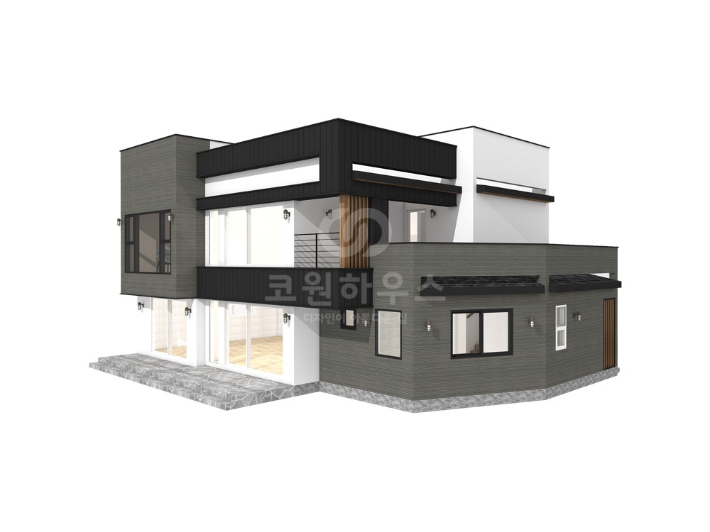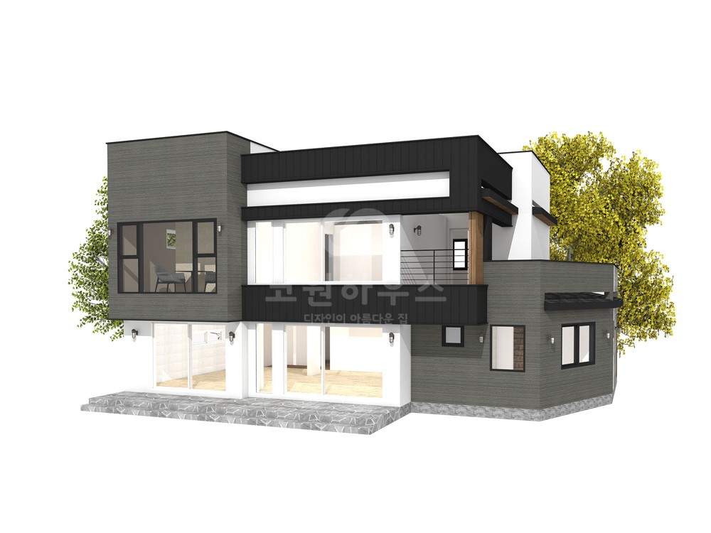 ■ 외벽재 : 스타코플렉스, KMEW 14MM 세라믹 사이딩, 합성목재 사이딩(NewTechWood), 알루미늄 패널(금동), 인조석(장백석), 현무암 부정형 데크