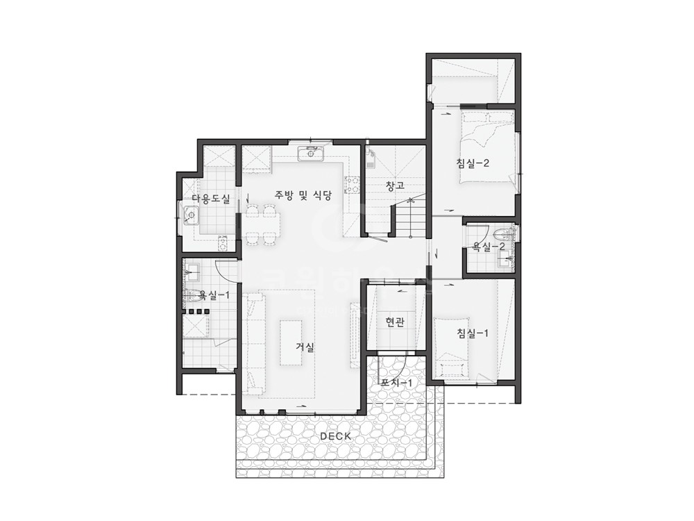 ■ 외벽재 : 스타코플렉스, I-CUBE 14MM 세라믹 사이딩, KMEW 14MM 세라믹 사이딩, 합성목재 루버(NewTechWood), 철평석 데크