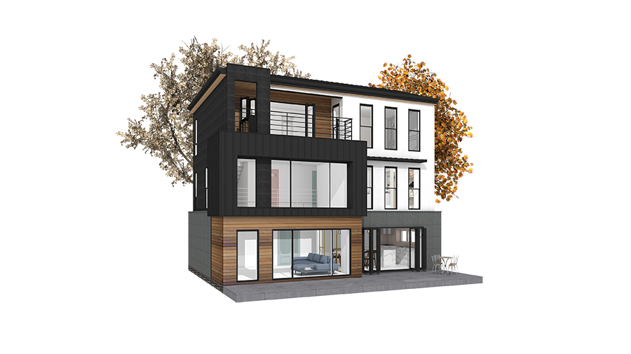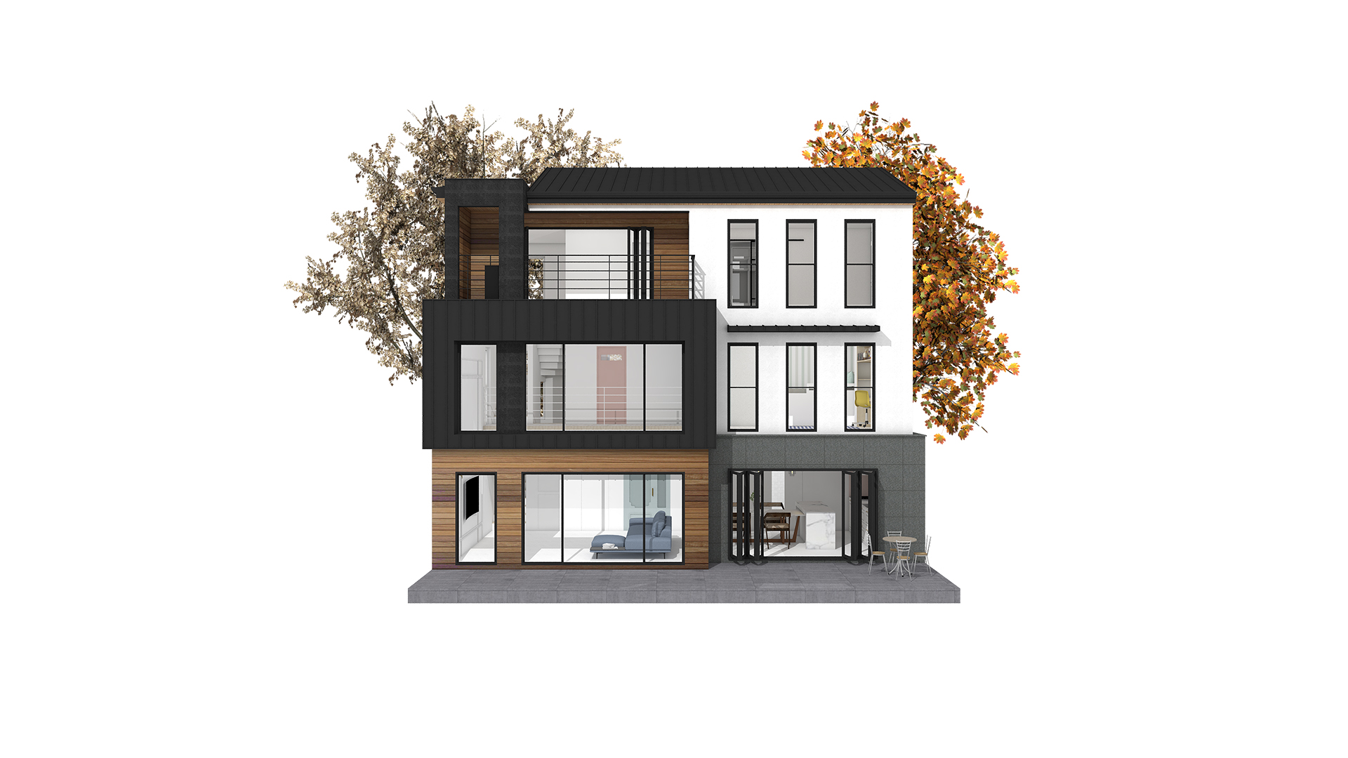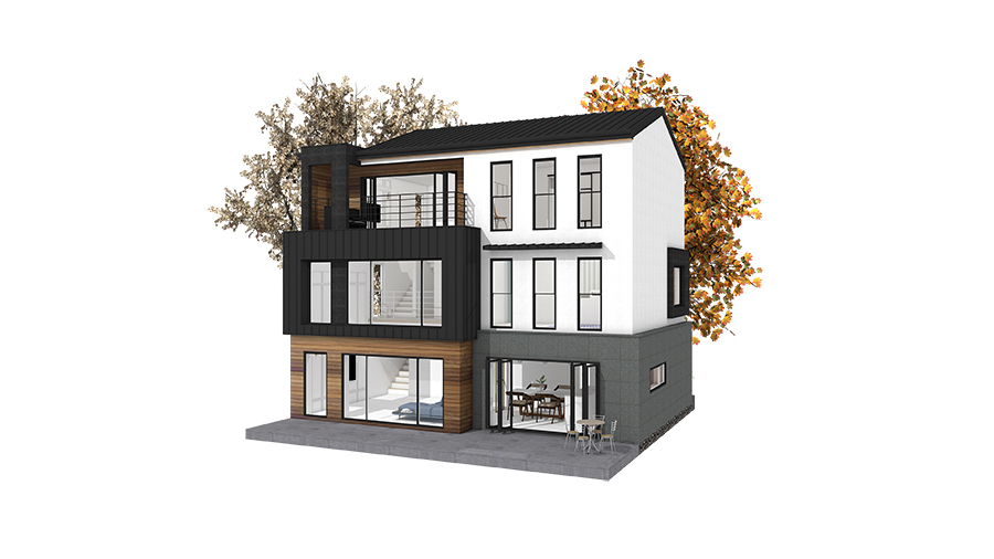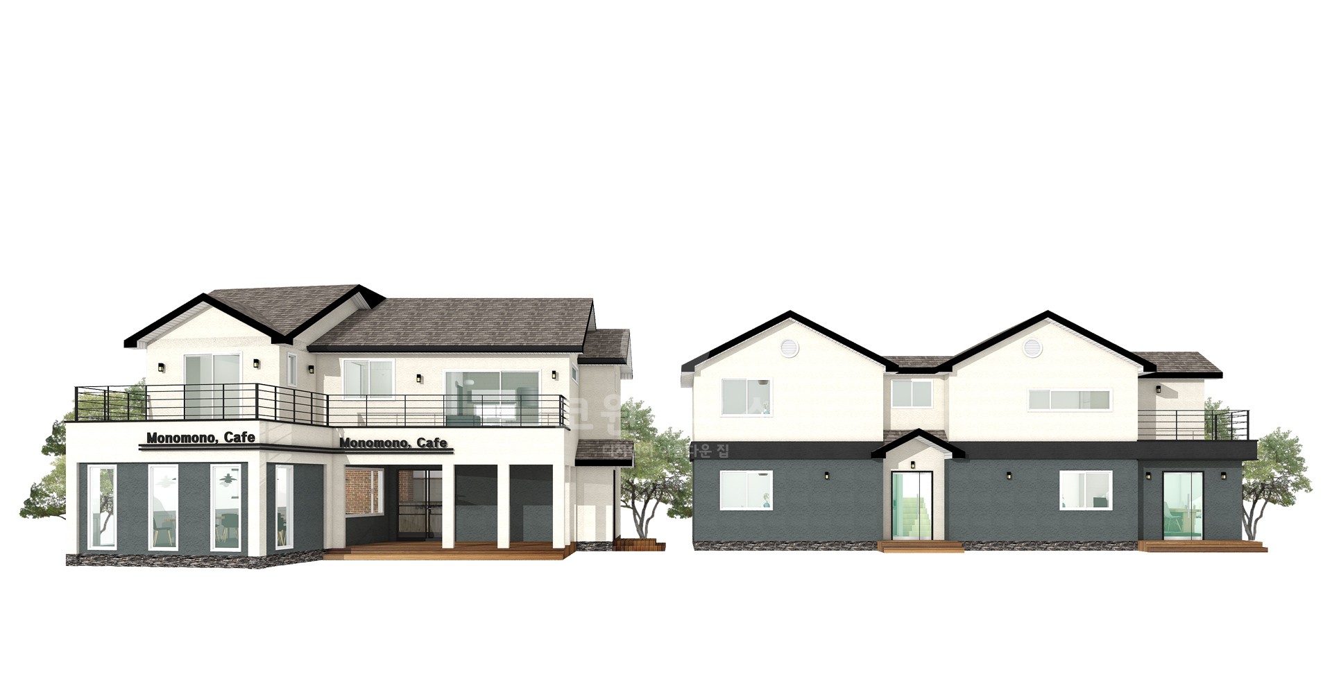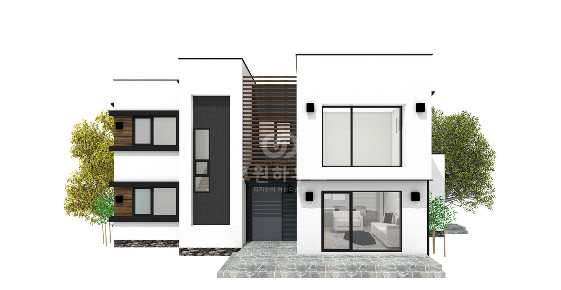 외벽재 : 스타코플렉스, 리얼징크 포인트, 현무암판석, 합성목재사이딩 포인트
